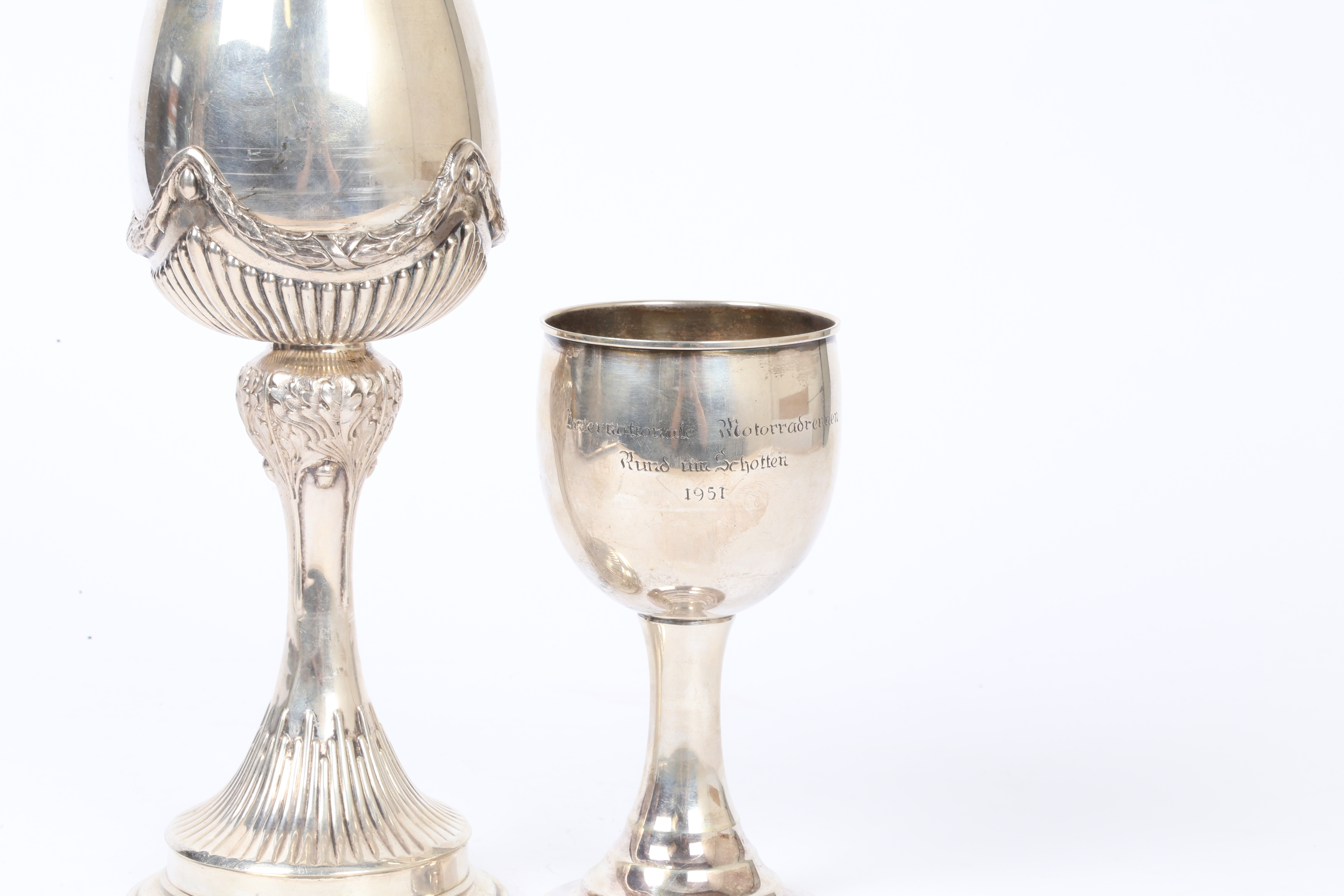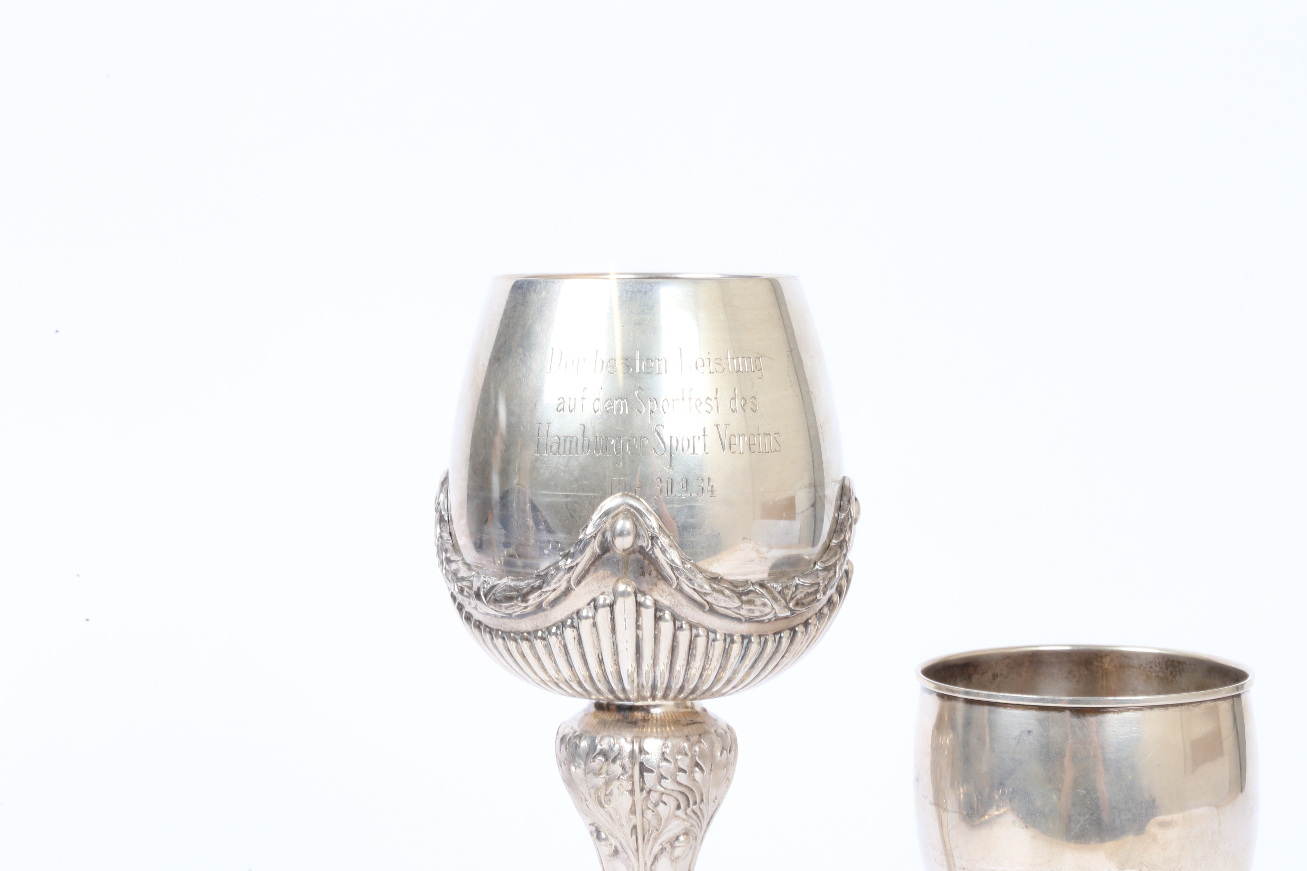 3733758. TWO GERMAN .800 SILVER TROPHY CUPS (2).