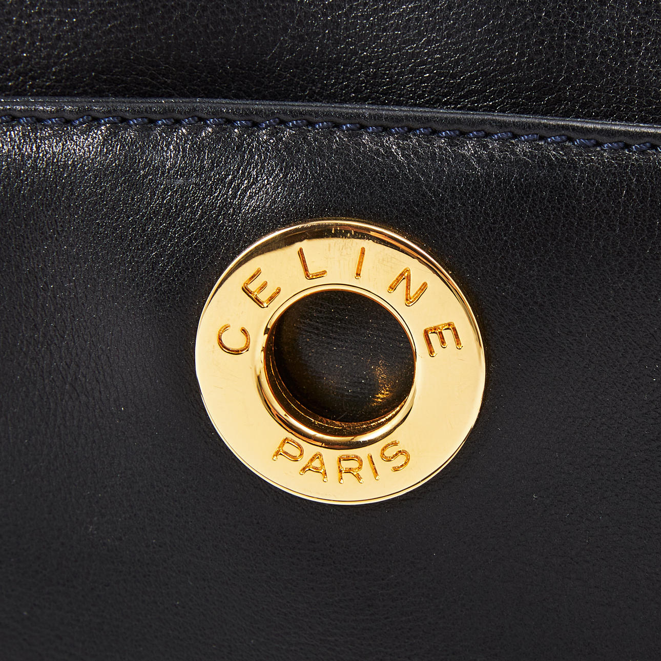 CELINE, shoulder bag in plain leather, circular push button at the front labeled CELINE PARIS.