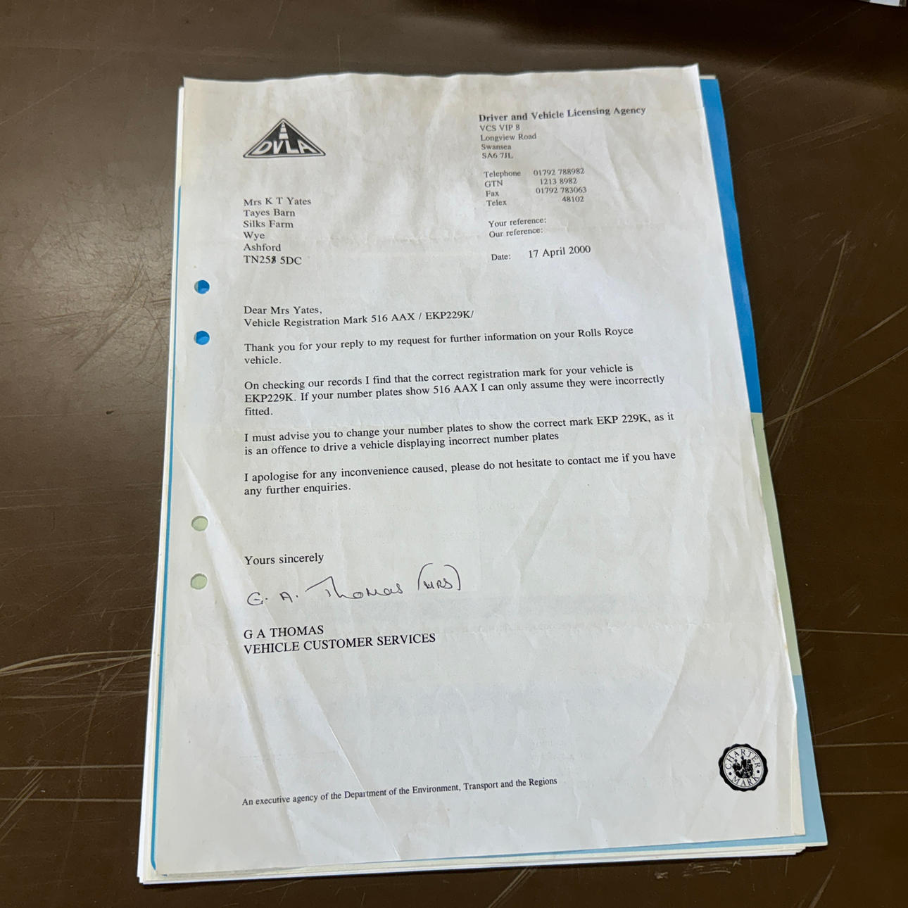 Reg No: unregistered, previously registered under number plate in GB as EKP 229K, formerly 516AAX. The UK Registration Certificate follows.