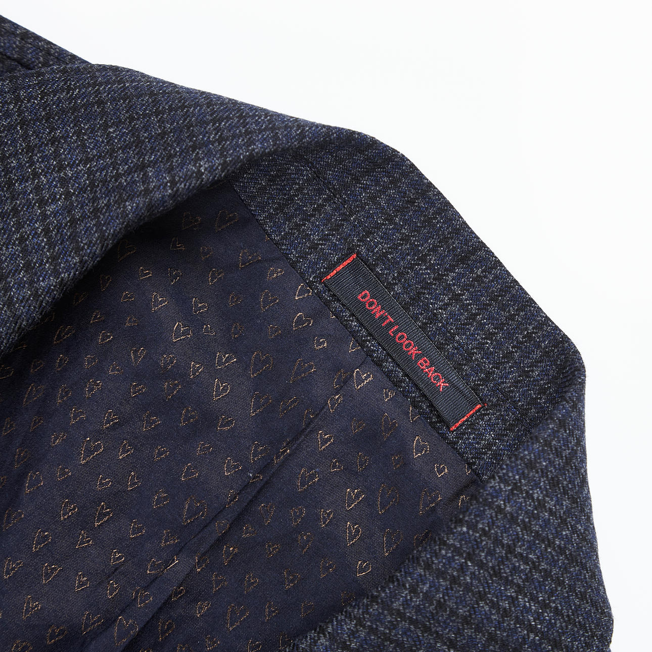 Blue small plaid pattern, side pockets, closure with buttons in oxidized white metal, label marked “The Gigi” and “Don't look back” back length approx. 101, shoulder 21.5, sleeve length 65, bust length 116, size TG52.
