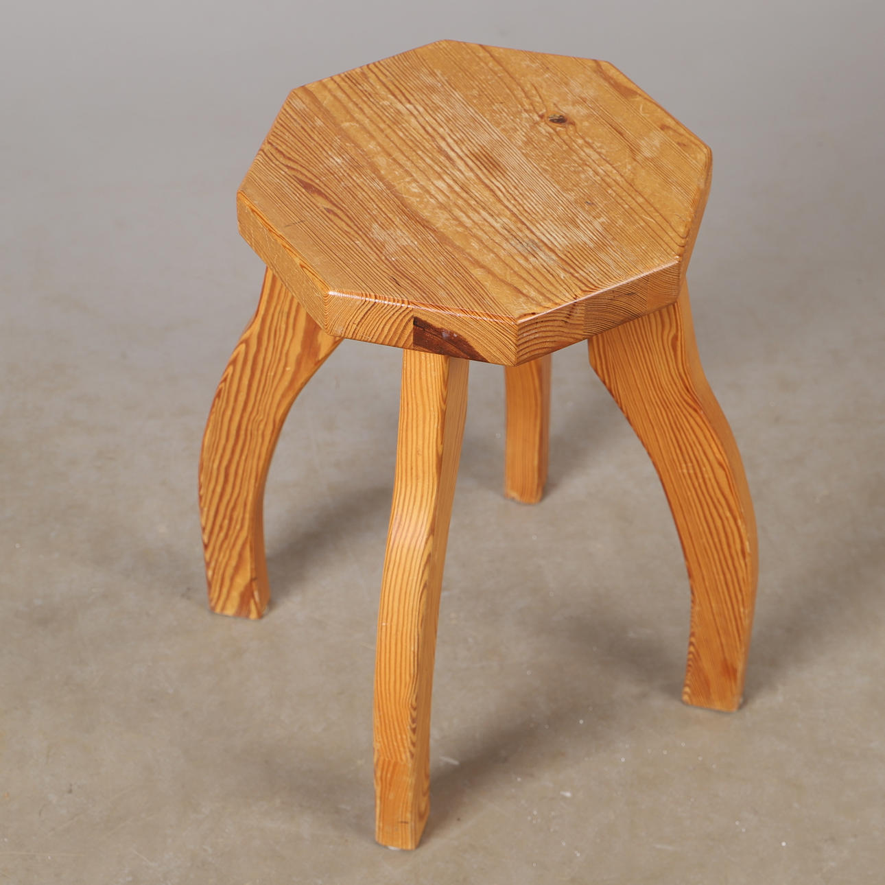 A pine stool, Sörgårdens carpentry, Mörgården, mid 20th century.