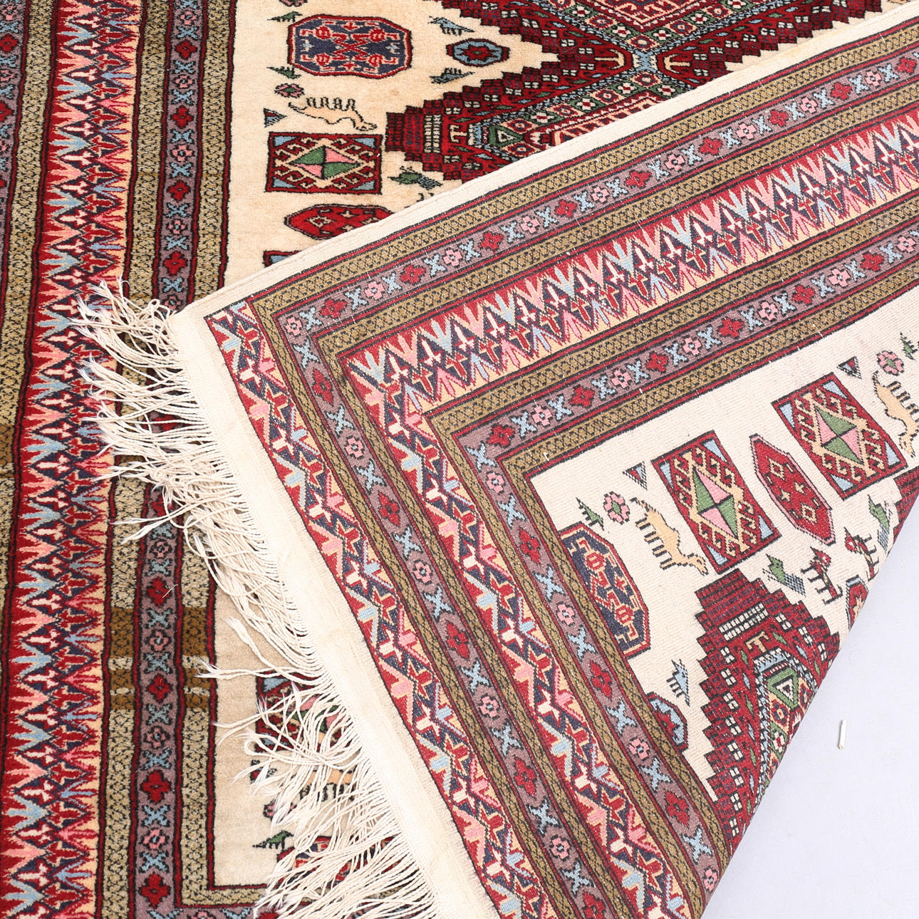 Normal wear and tear, minor stains, a few tears at the lashes.