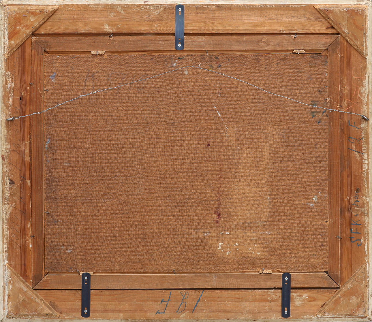 Signed, oil on panel 48x65 cm, outer dimensions 72x83 cm.
