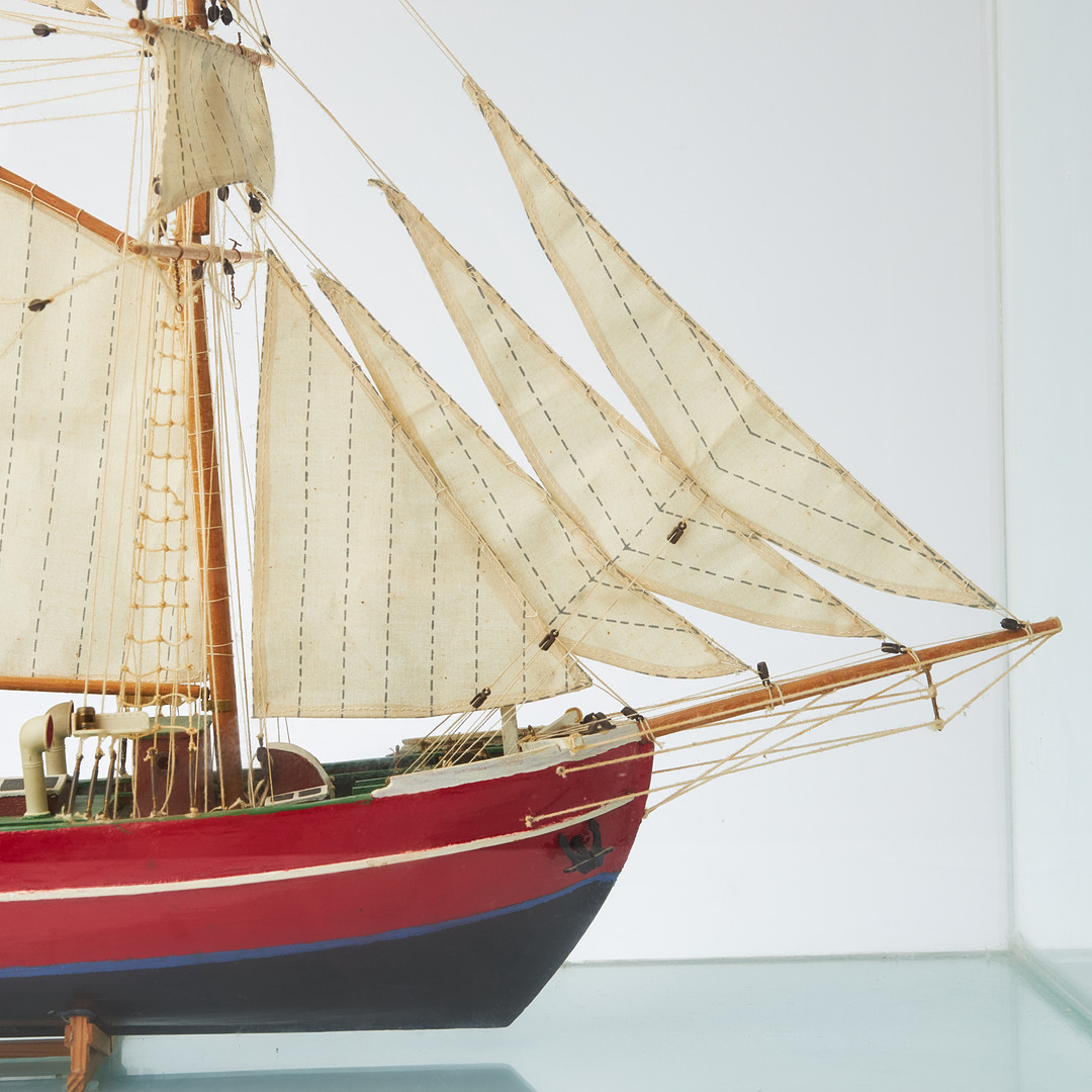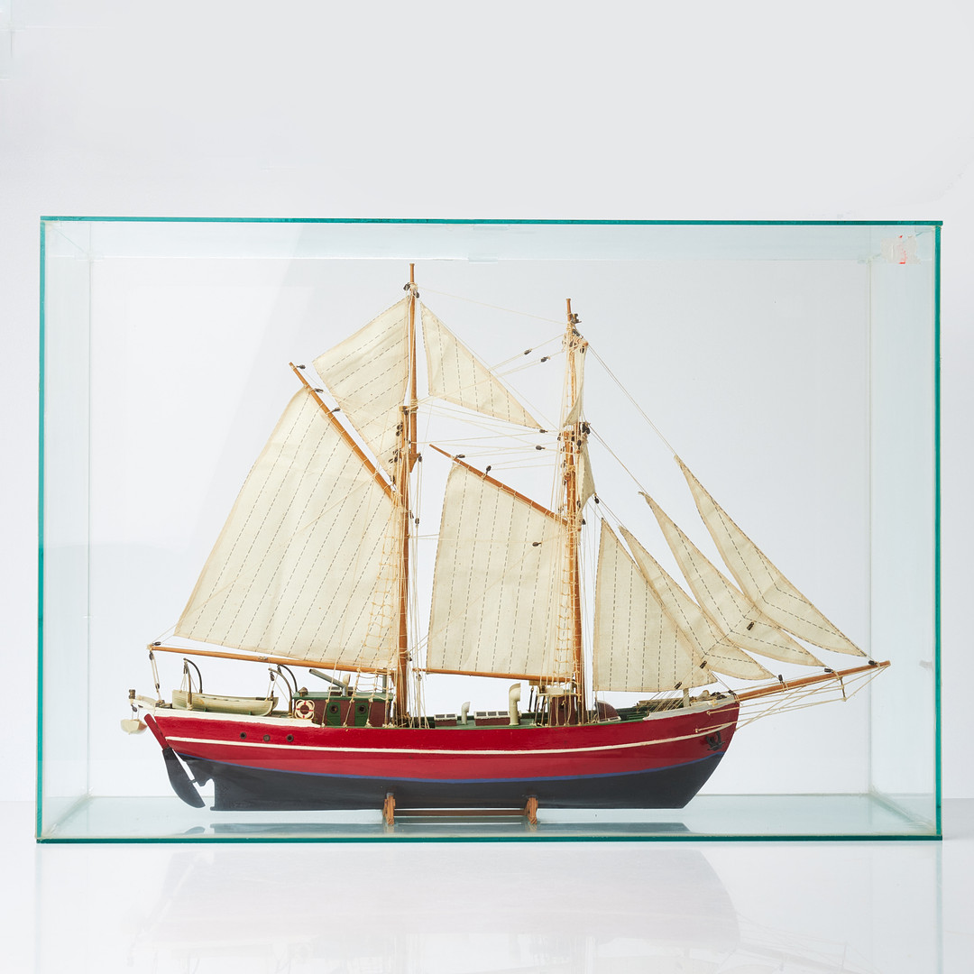 3752436. MODEL SHIPS. Wooden, in glass display cases.