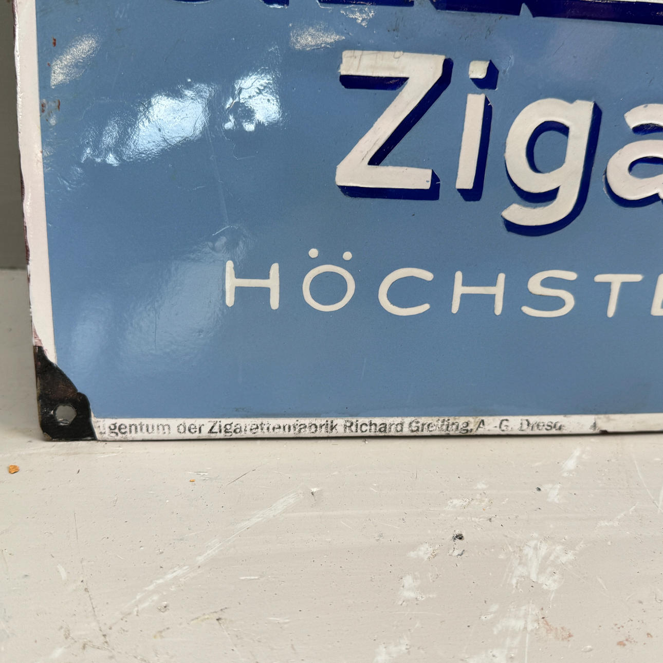 Wear and marks on motifs and edges.
