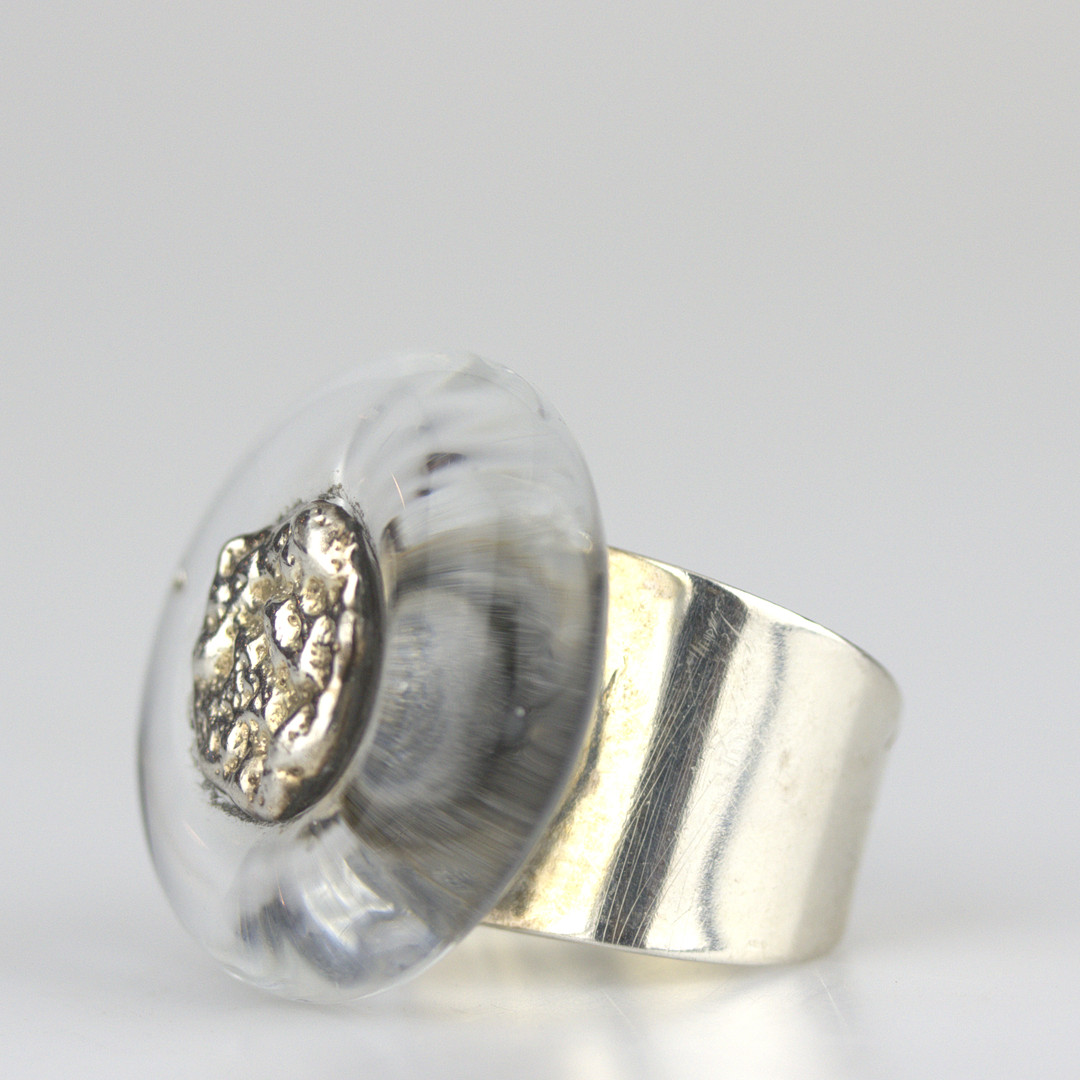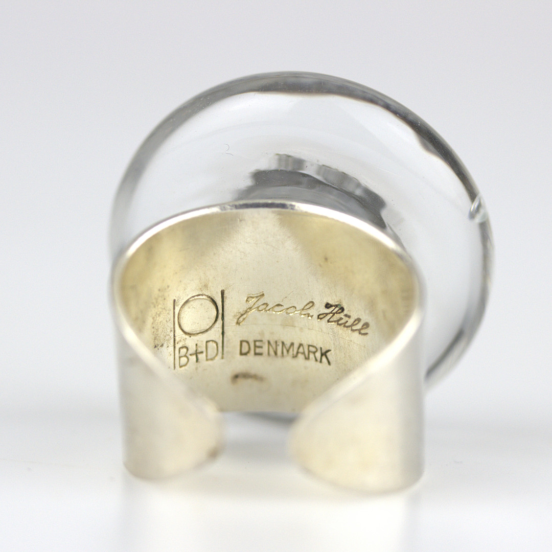 3757253. JACOB HULL. Ring, silver and glass, signed, B+D, Denmark.