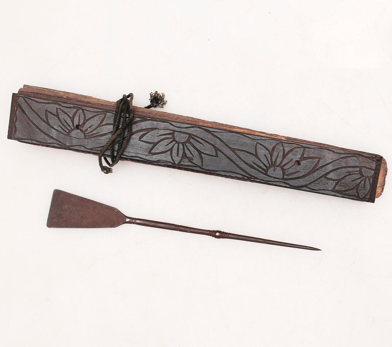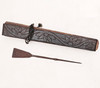Palm leaves and covers in engraved and varnished wood It includes a punch for writing 3.5x26 cm.