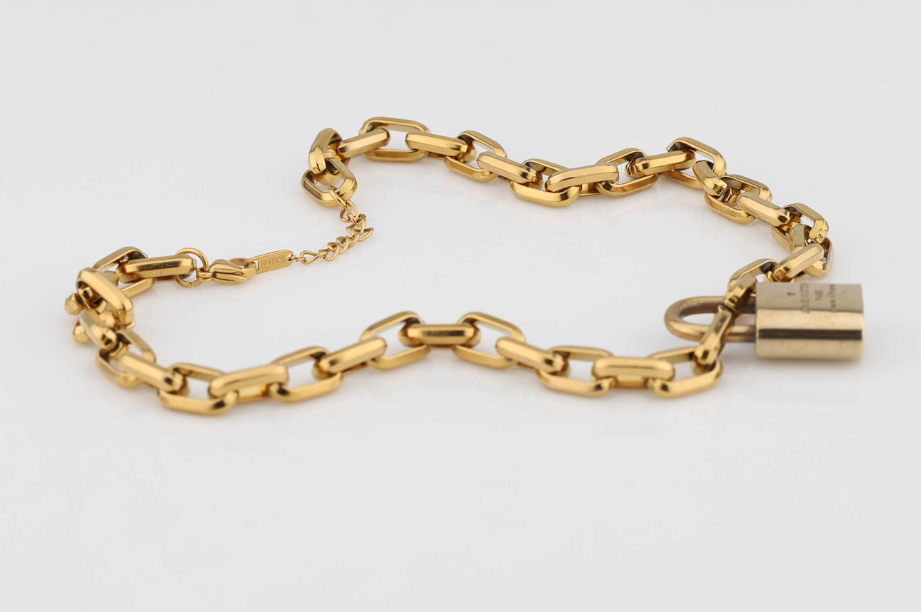 3759356. LOUIS VUITTON, Necklace with padlock, gold colour.