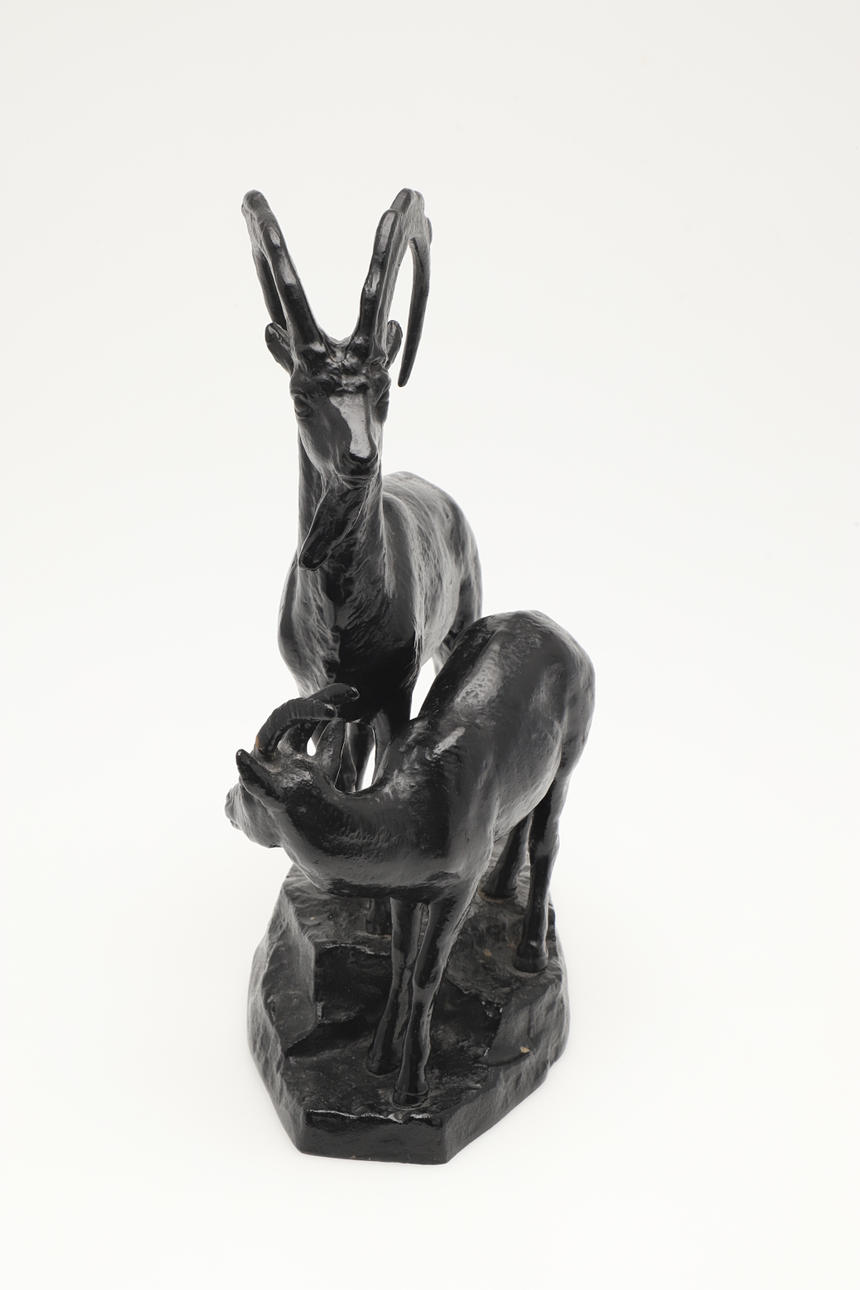 A RUSSIAN CAST IRON MOUNTAIN GOAT GROUP.