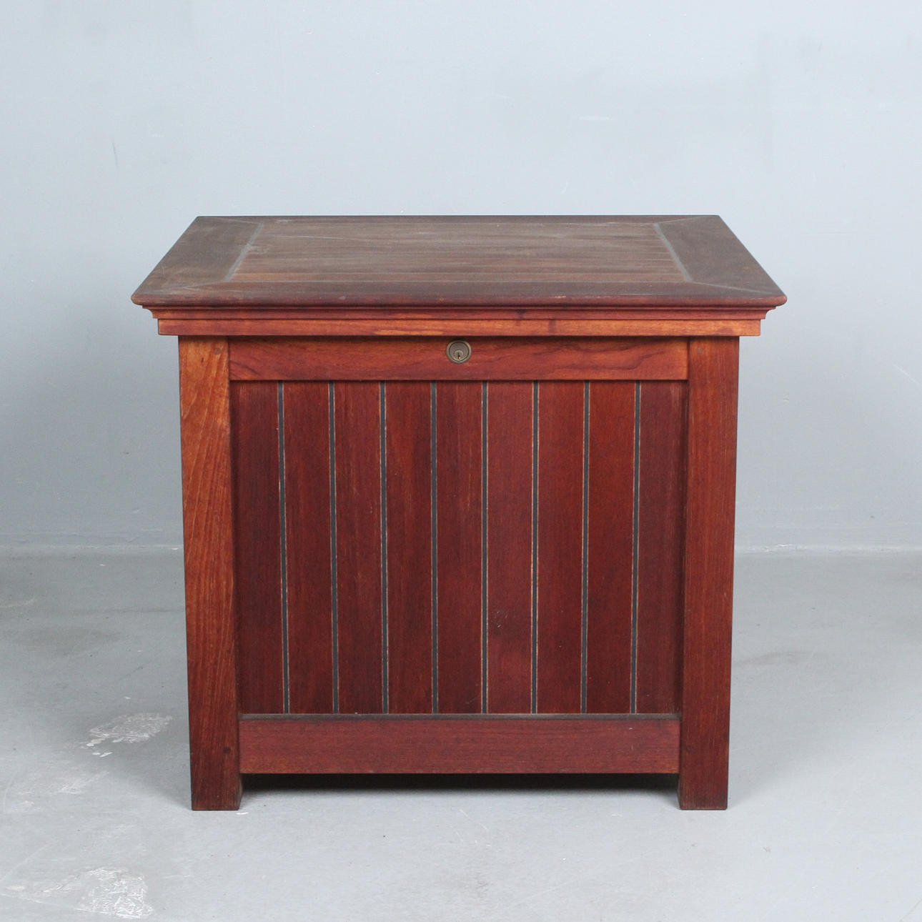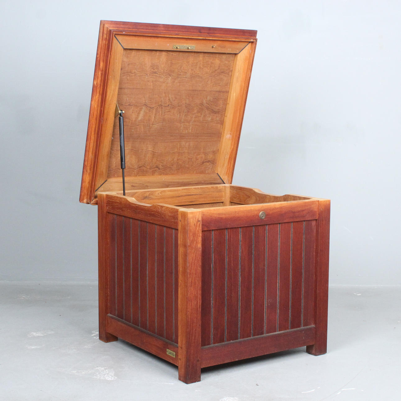 Garpa, square teak cushion chest, size 'S' Dimensions approx.: H. 63 cm, W 73 cm, depth 73 cm.