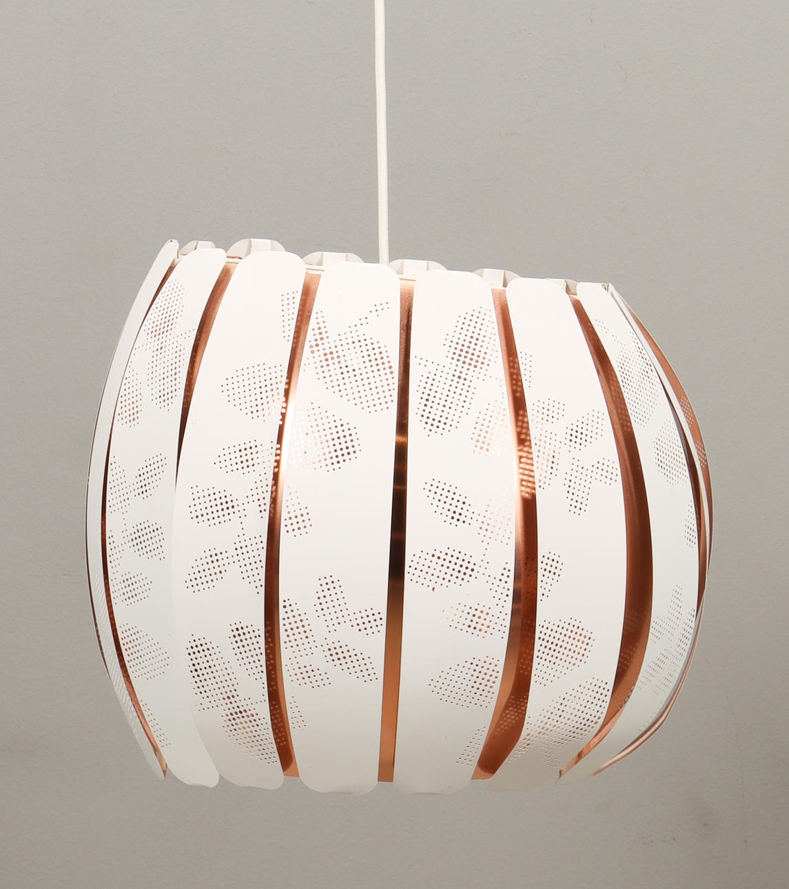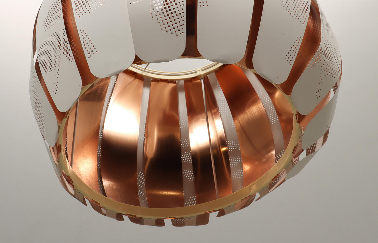 White perforated metal and copper.