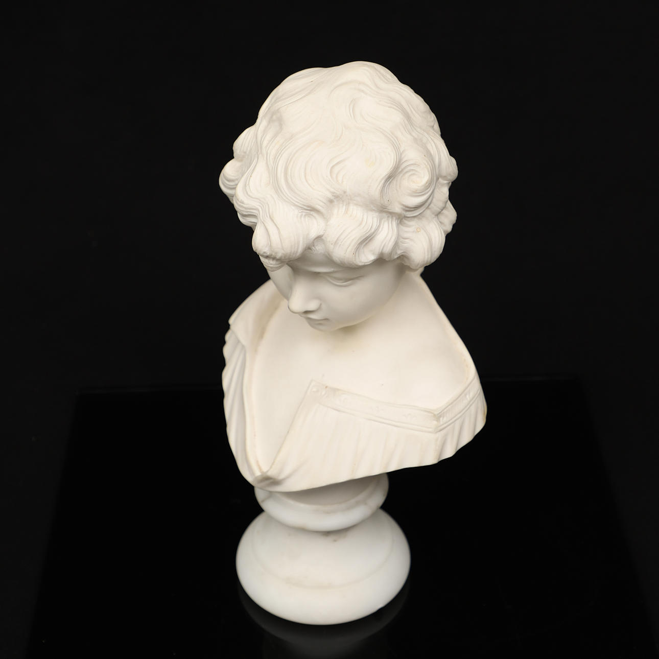 BUST, signed “Studio Prof. G. Bessi”, marble and alabaster, Italy.