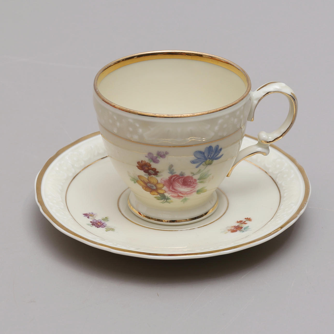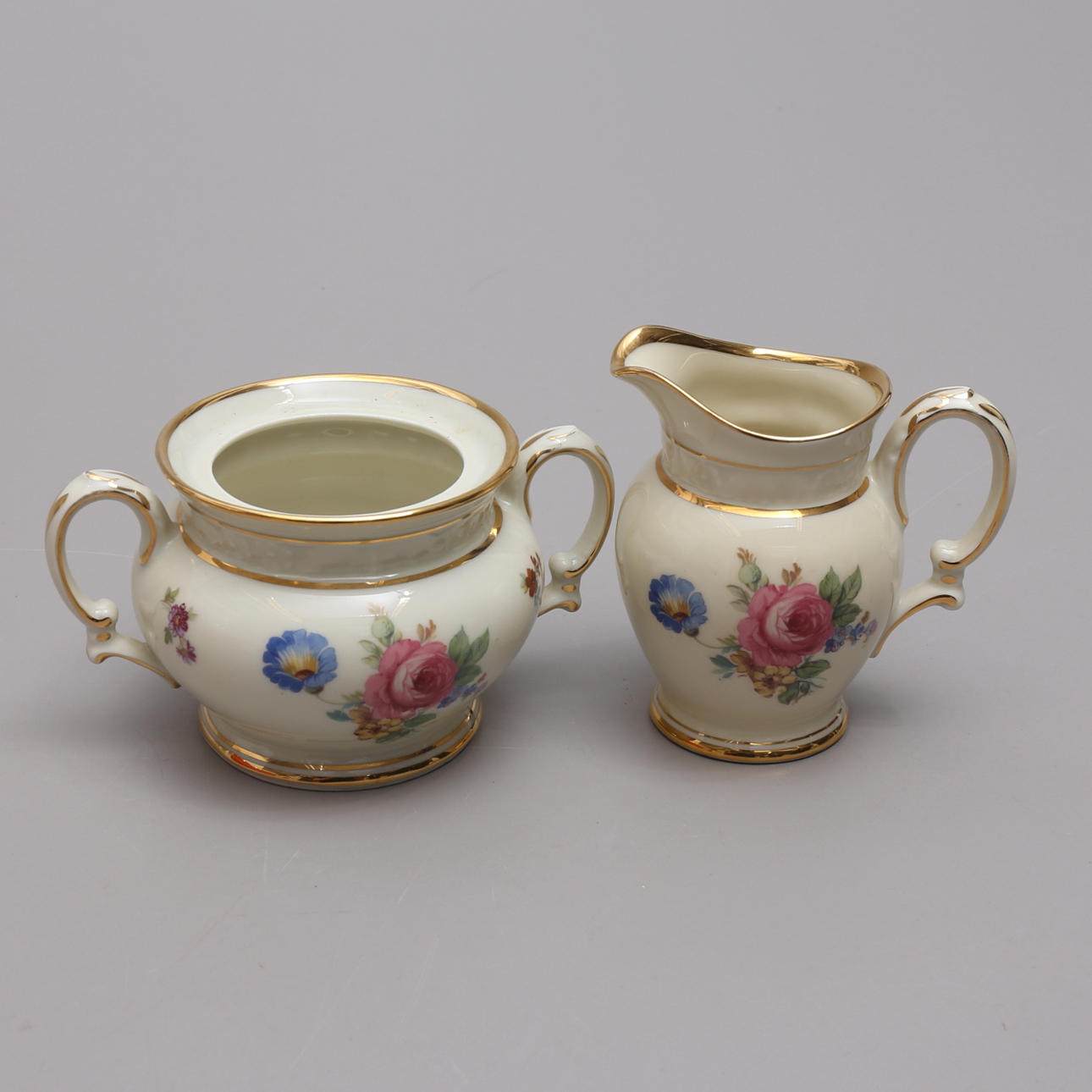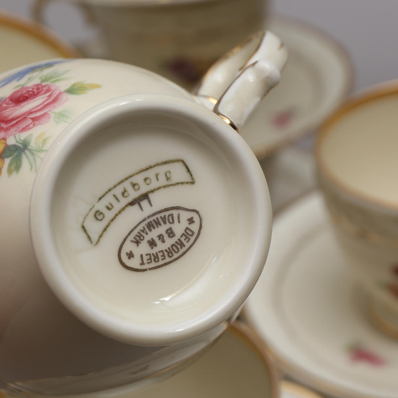 11 cups with 10 barrels Sugar bowl and cream snack Coffee pot.