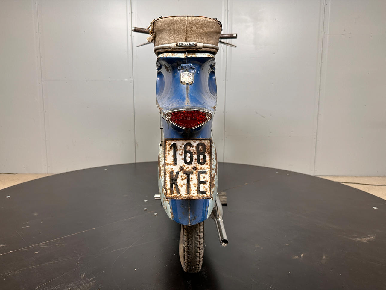 Registration number: unregistered, older German license plate sitting on the moped “168 KTE”
