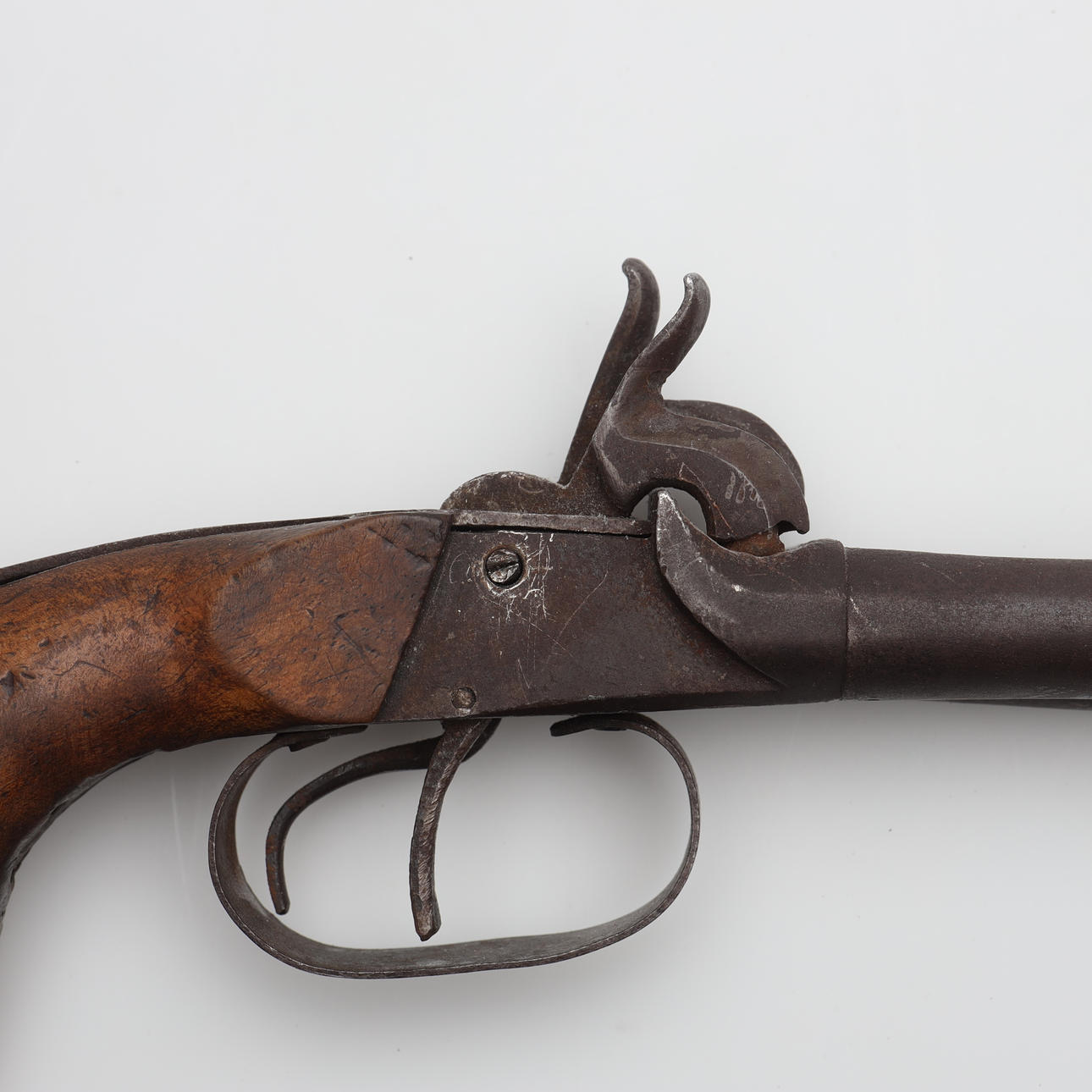 MUZZLE-LOADING PISTOL, double-barreled.