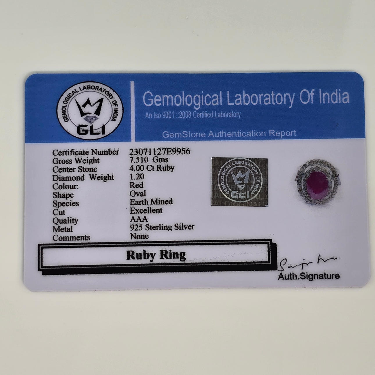 4ct Ruby Gemstone Ring with 1.20ct Diamond Accents,