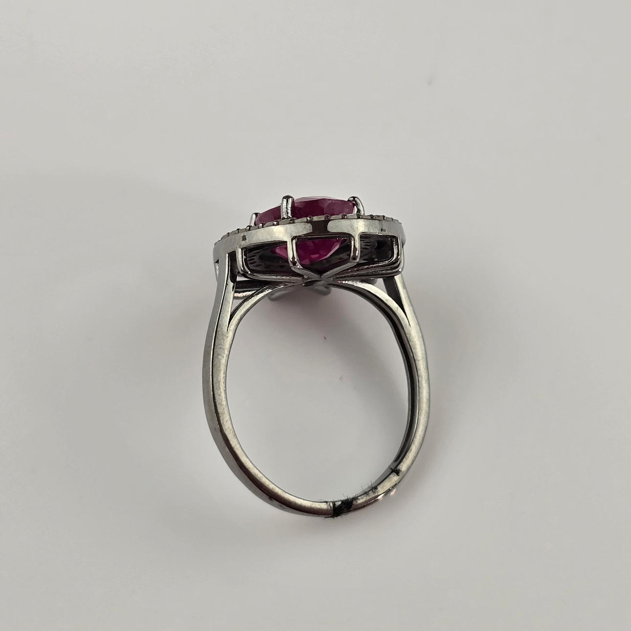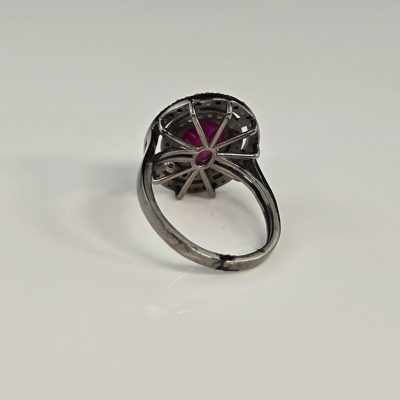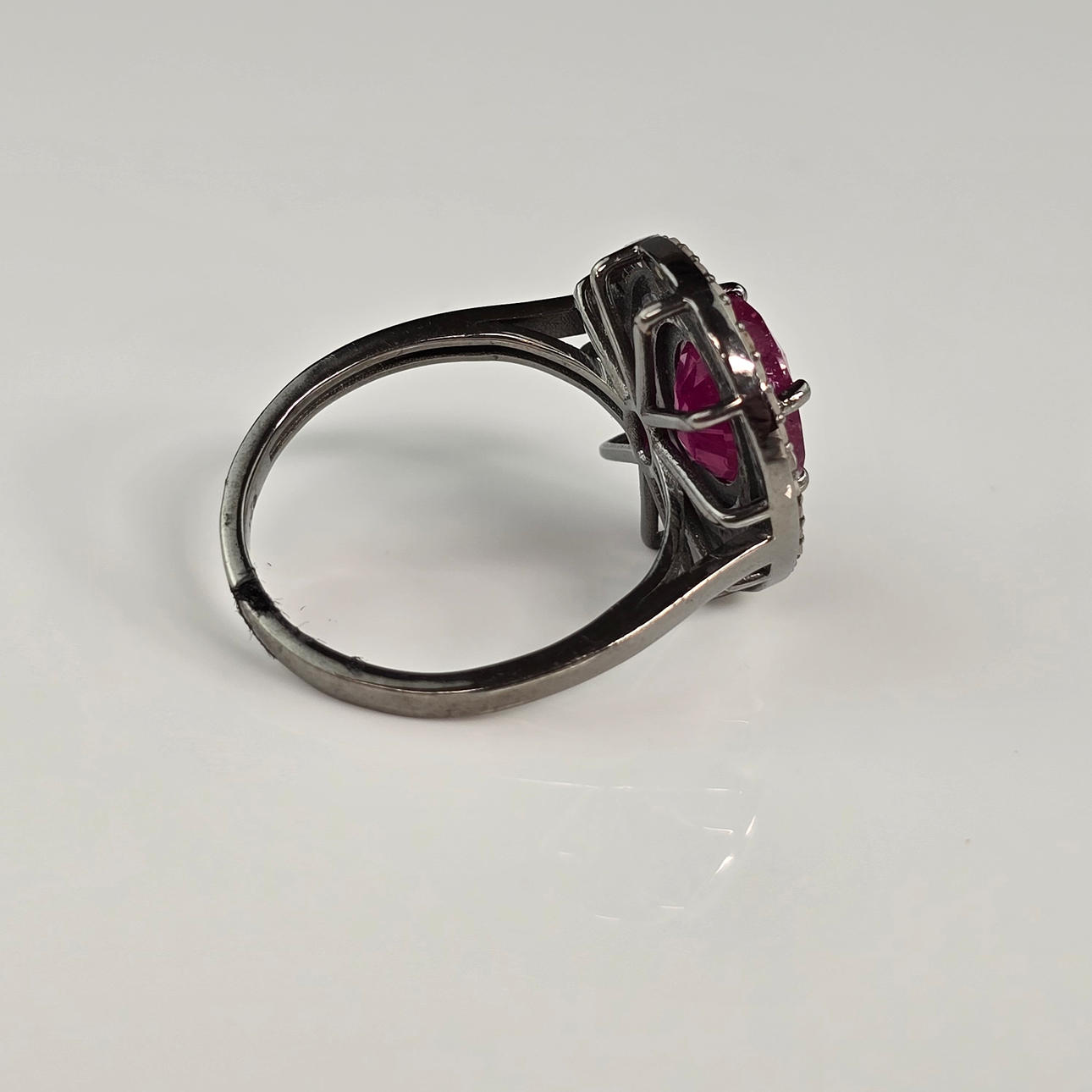 Ruby Gemstone Ring with Diamond Accents, 925 Silver.