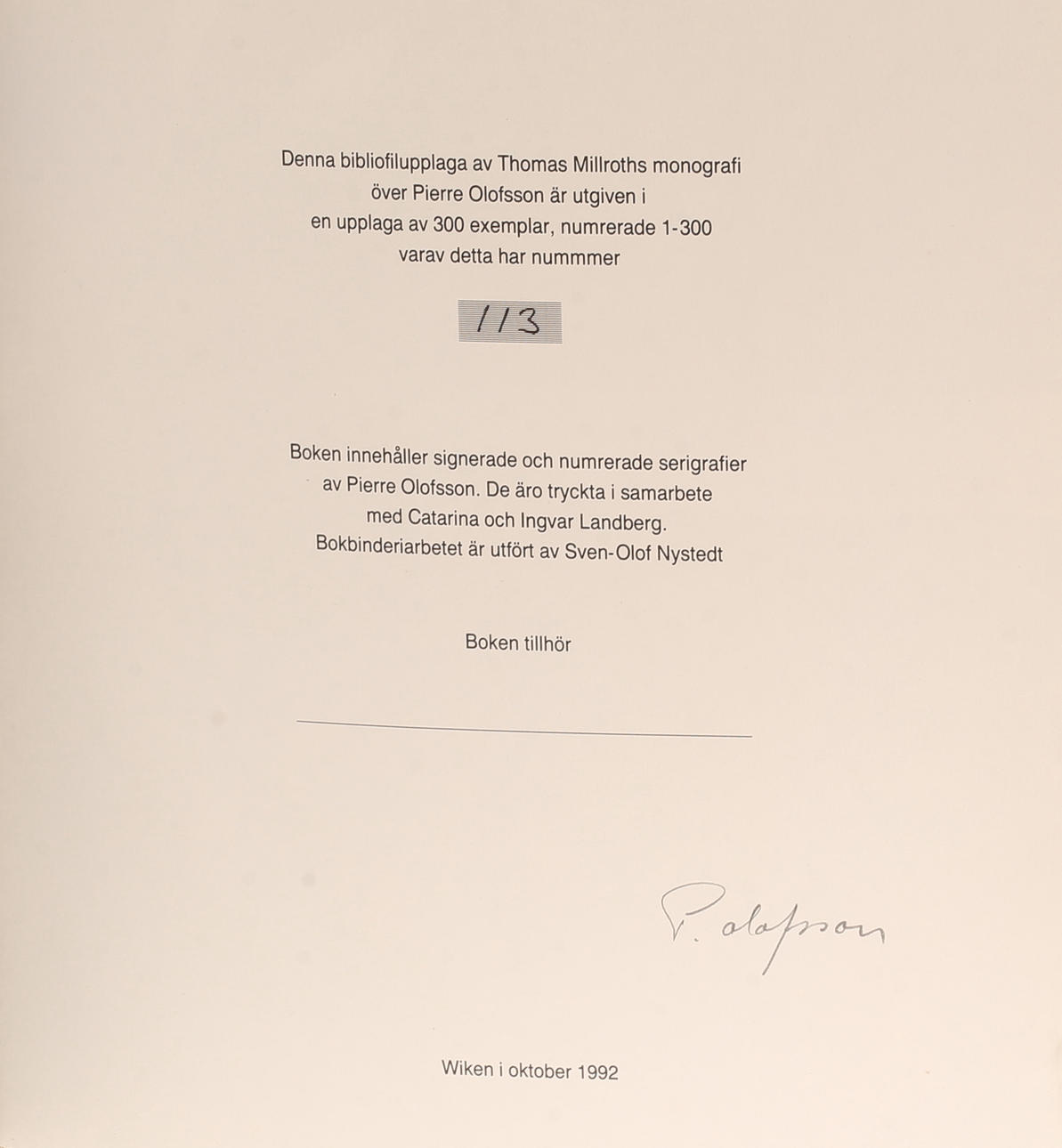 Thomas Millroth, Pierre Olofsson, published in an edition of 300 copies this number 113.