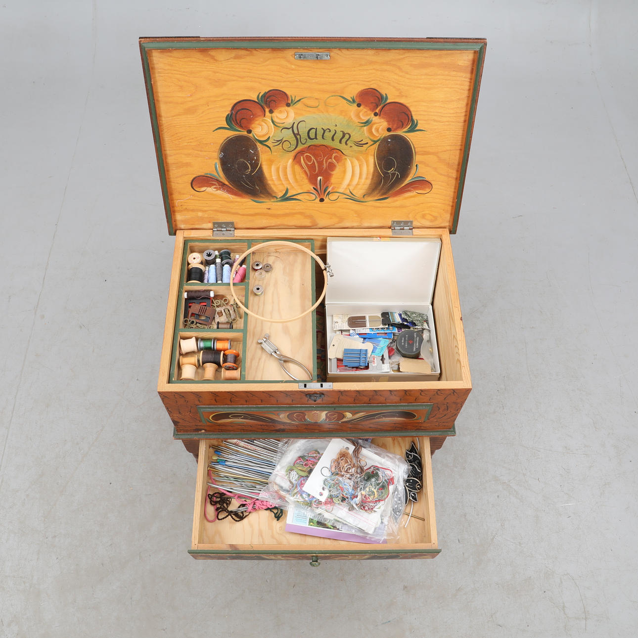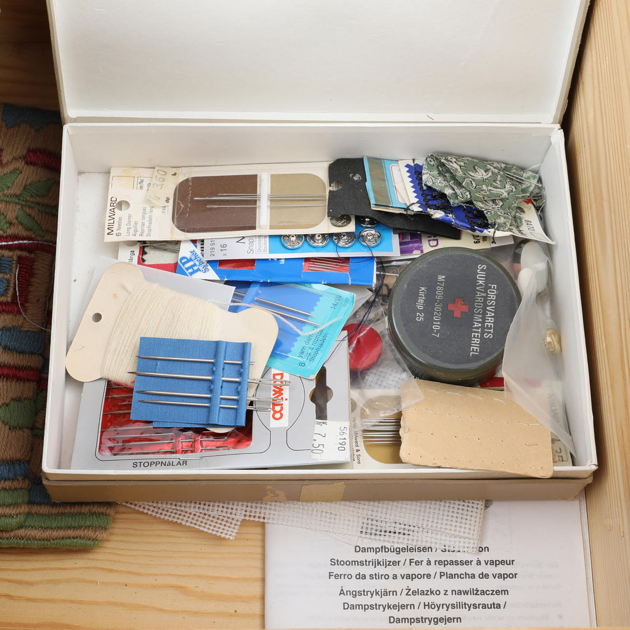 Sewing accessories are included.