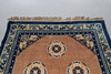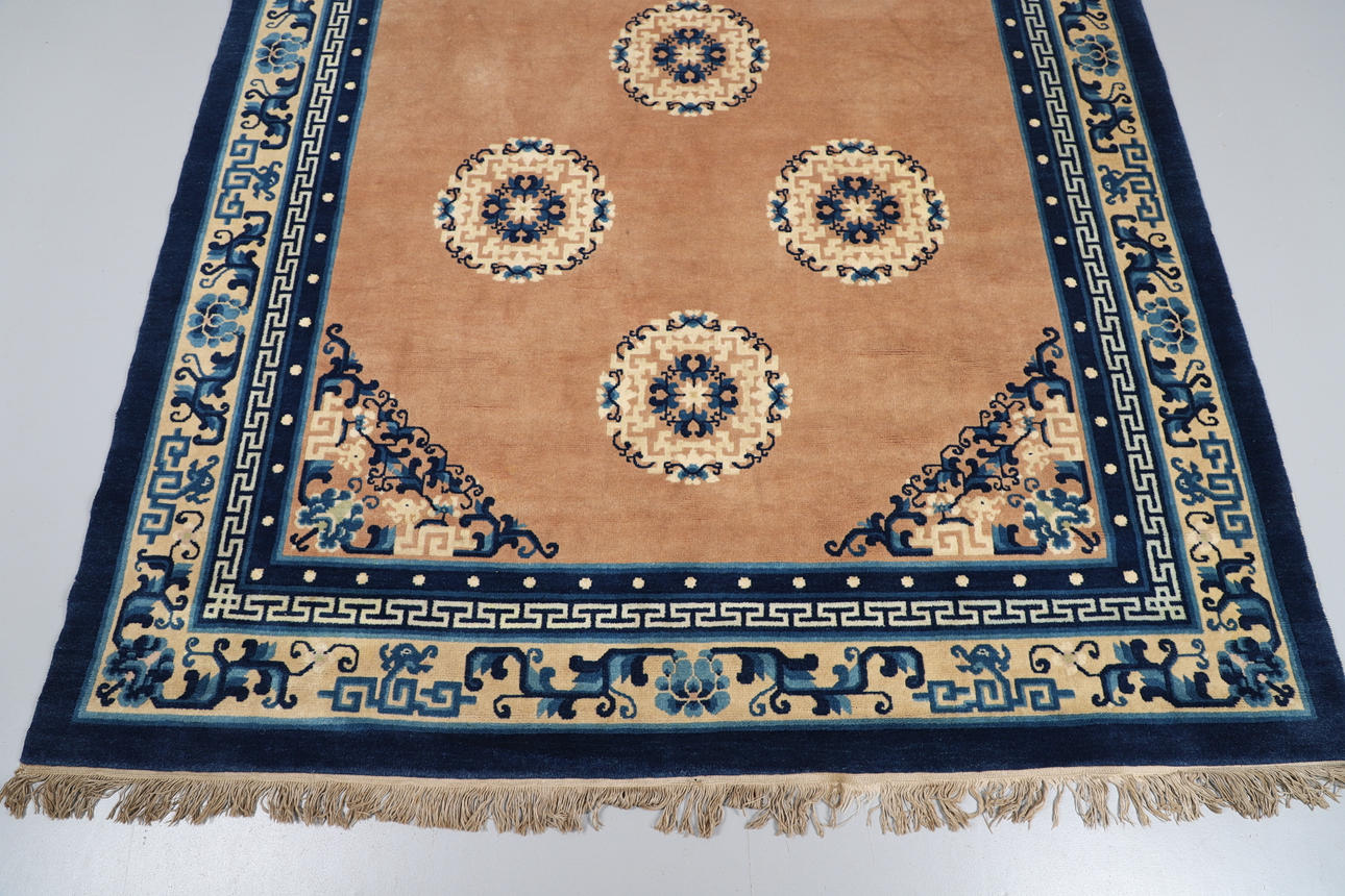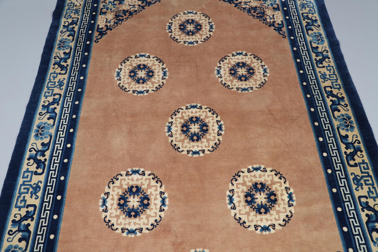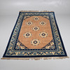 The lozenge field with seven roundels enclosed by spandrels and leafy vine borders. 242cm x 170cm.