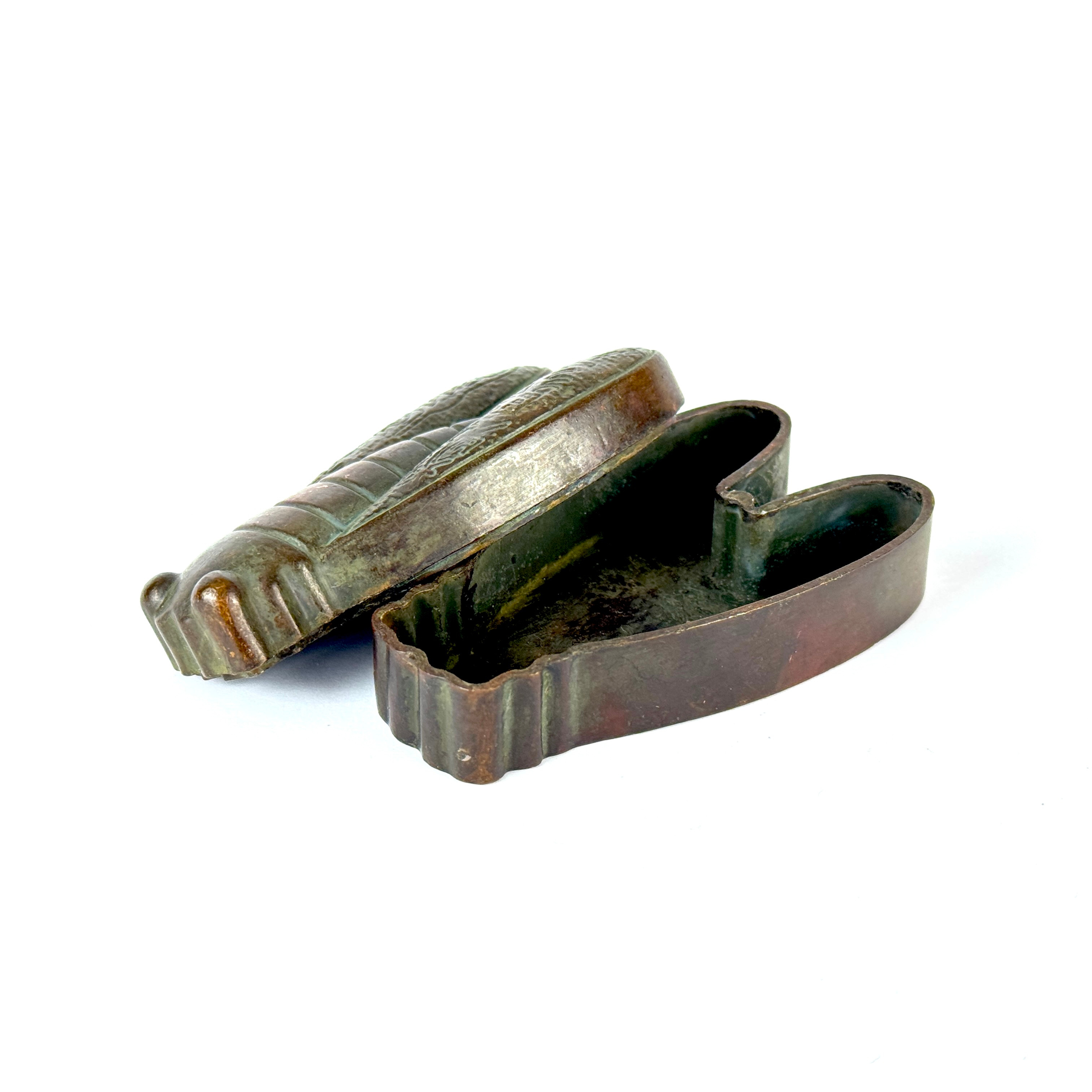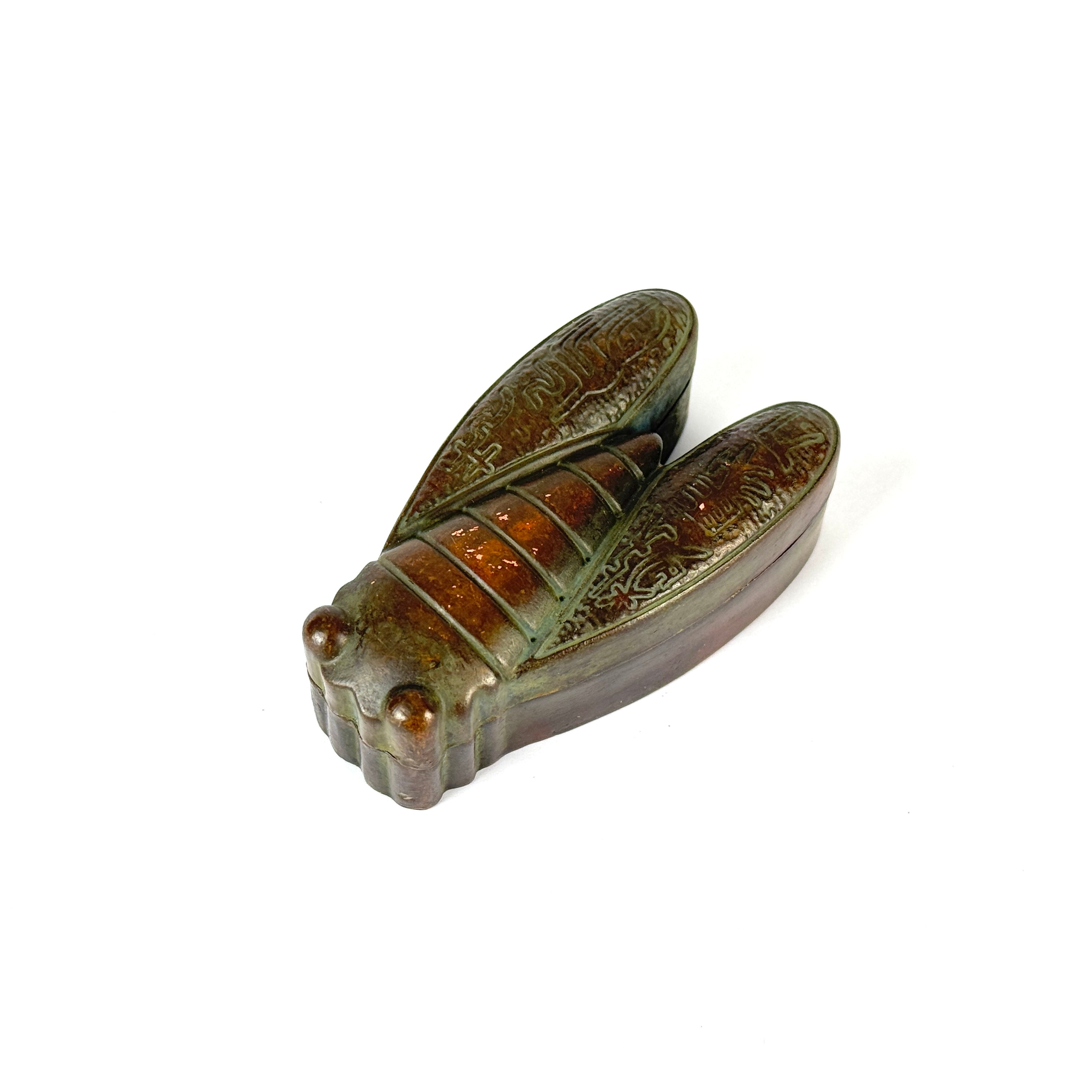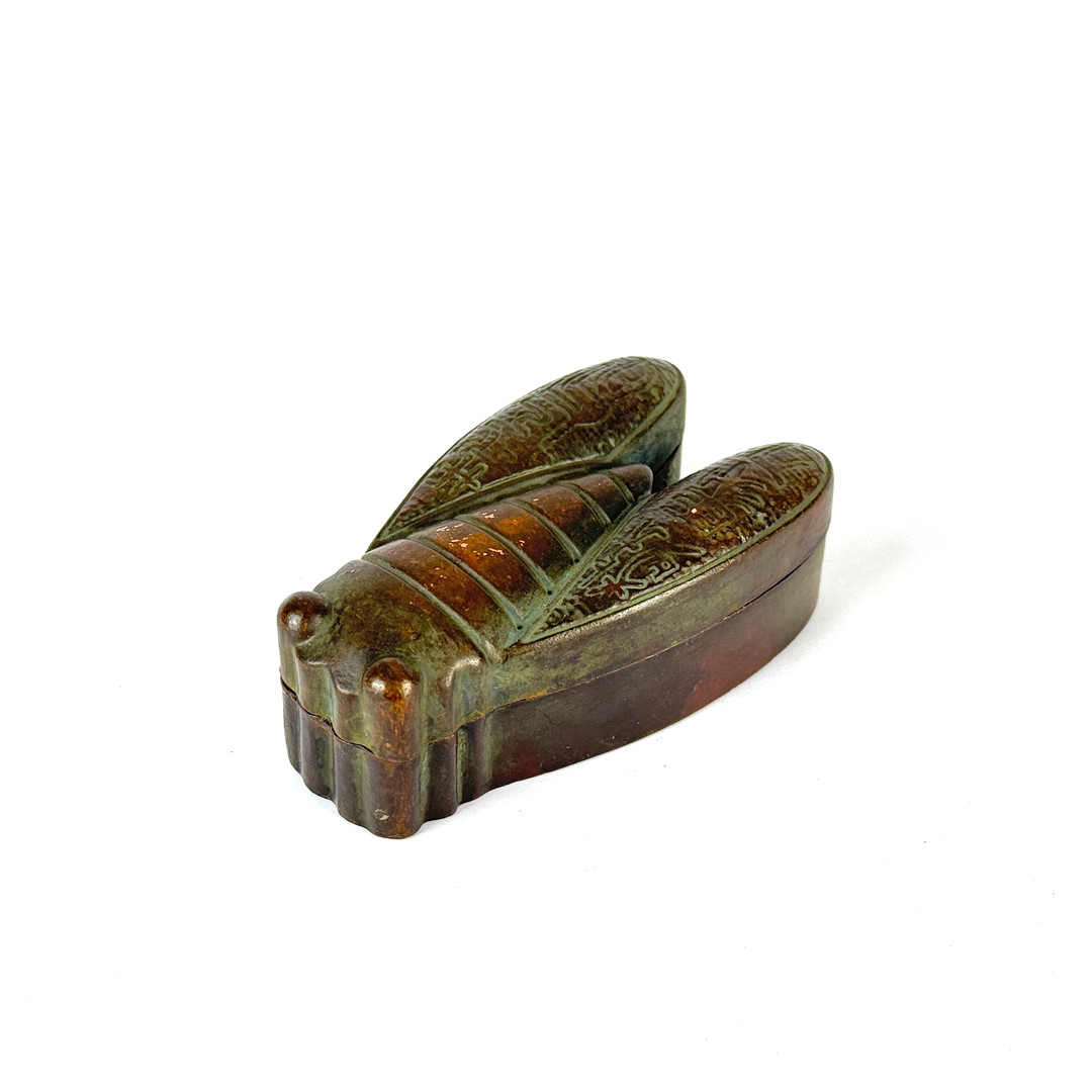 3801980. CHINESE BRONZE CICADA SHAPED BOX.