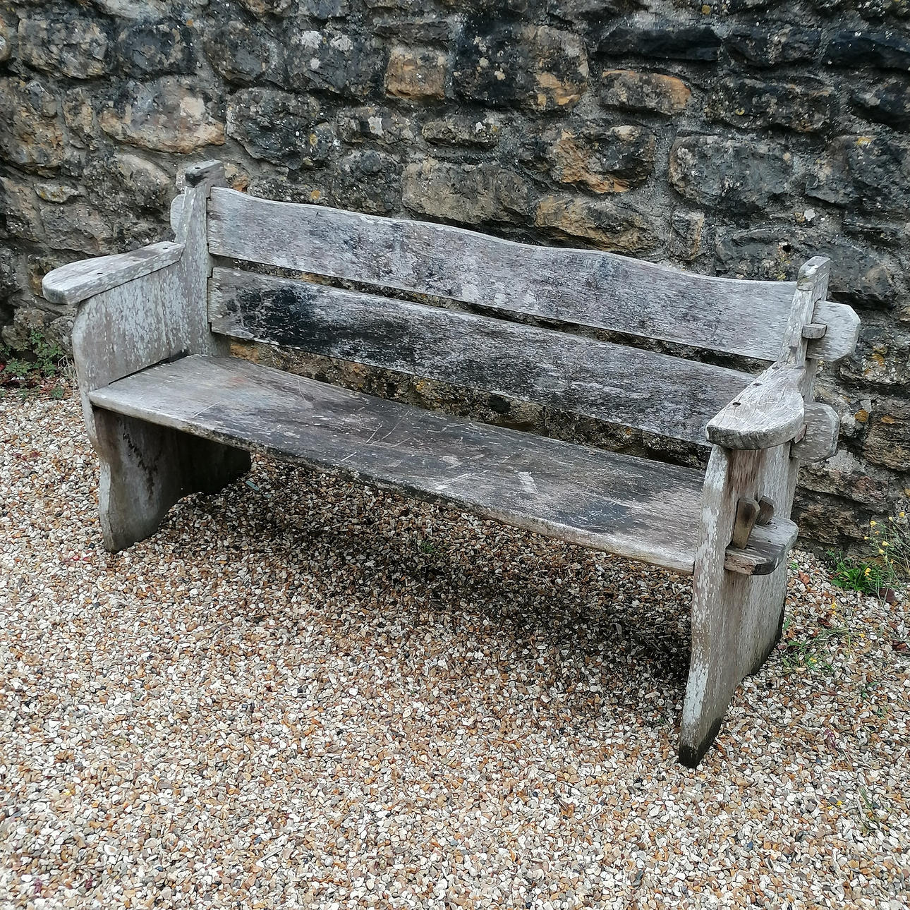 3802104. 3 SEATER TEAK SLATTED BENCH.