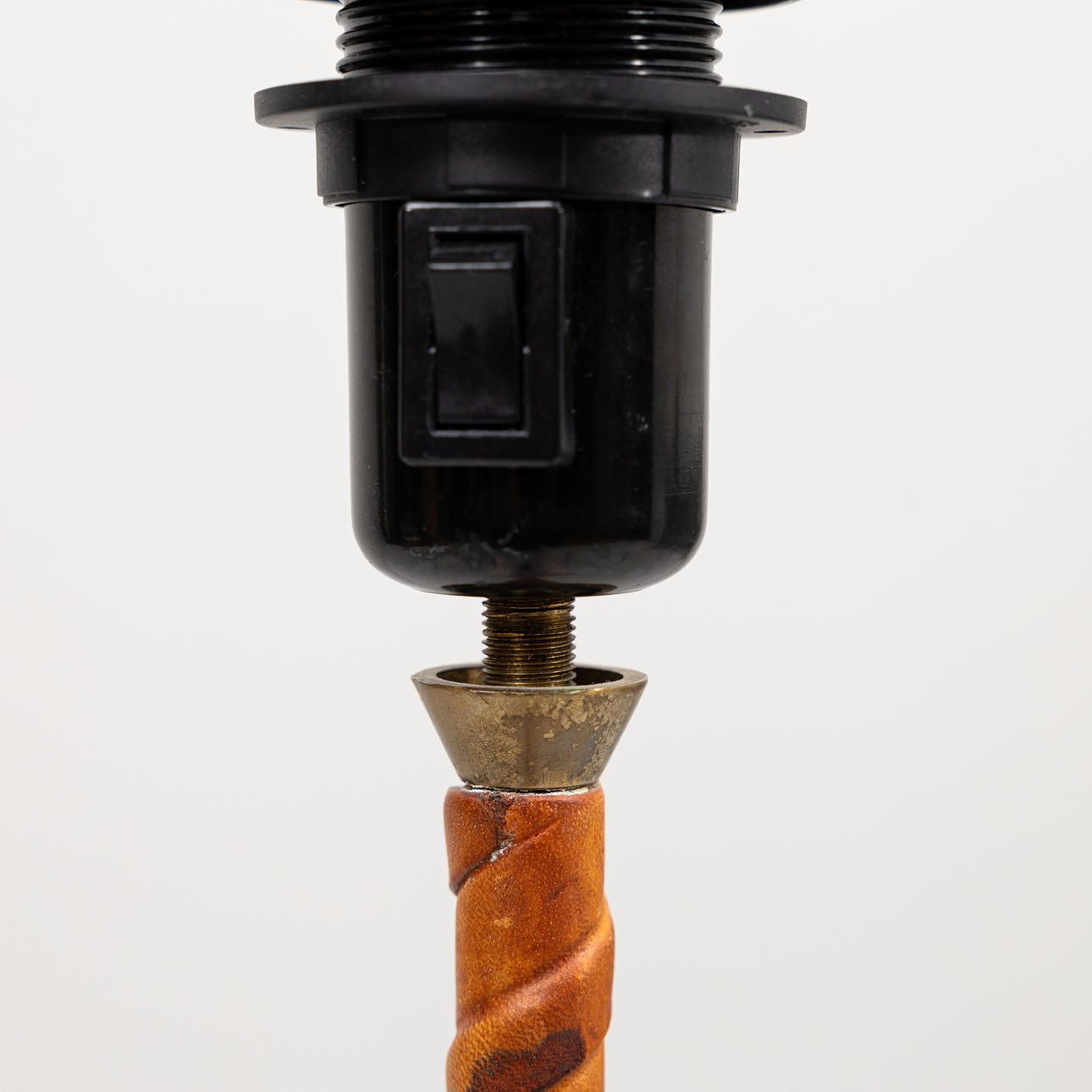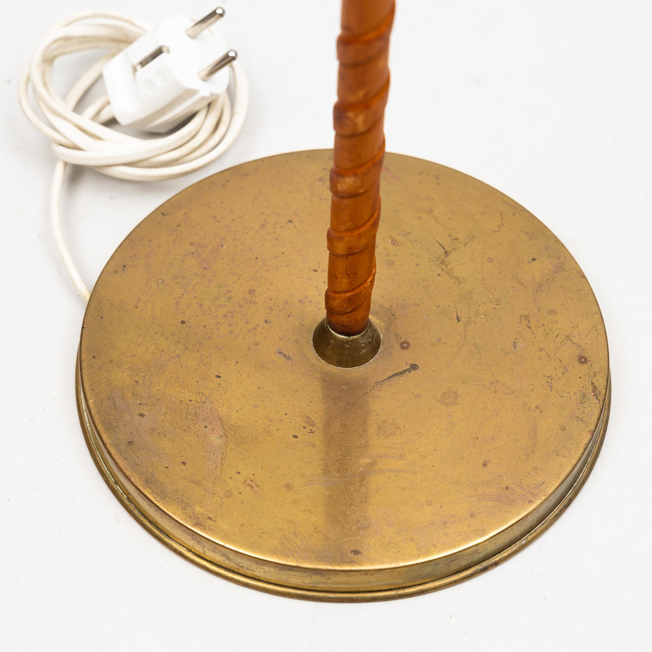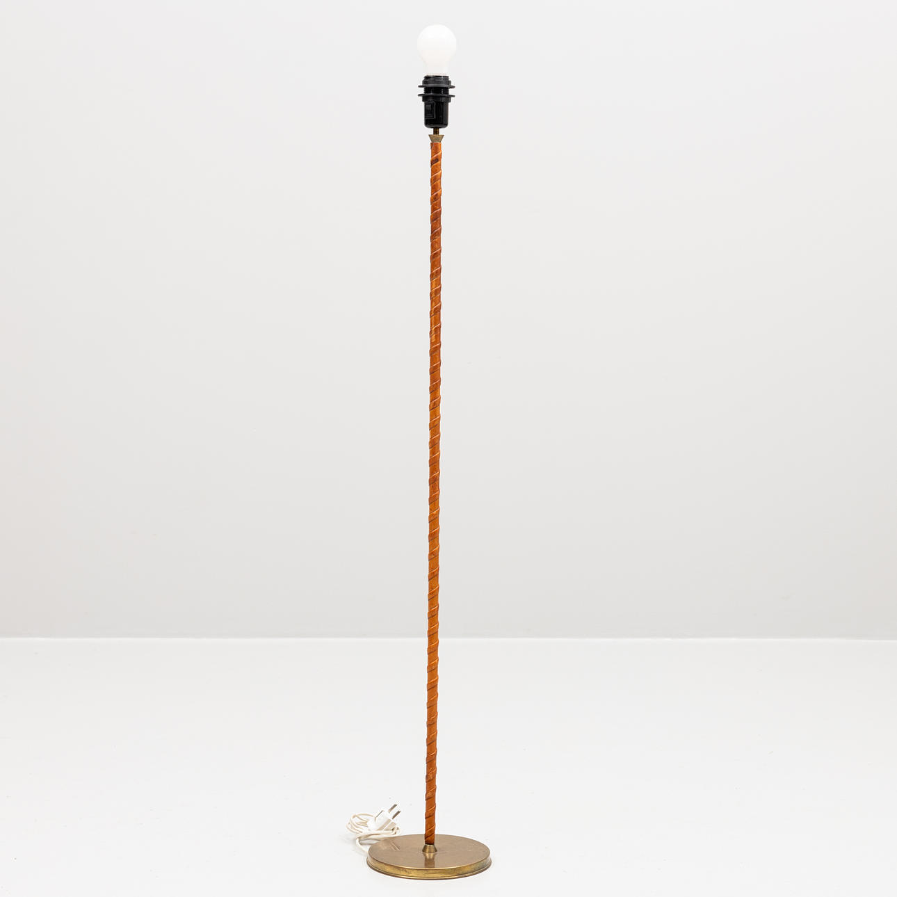A Böhlmarks floor lamp, brass, leather-clad, 1940s.