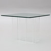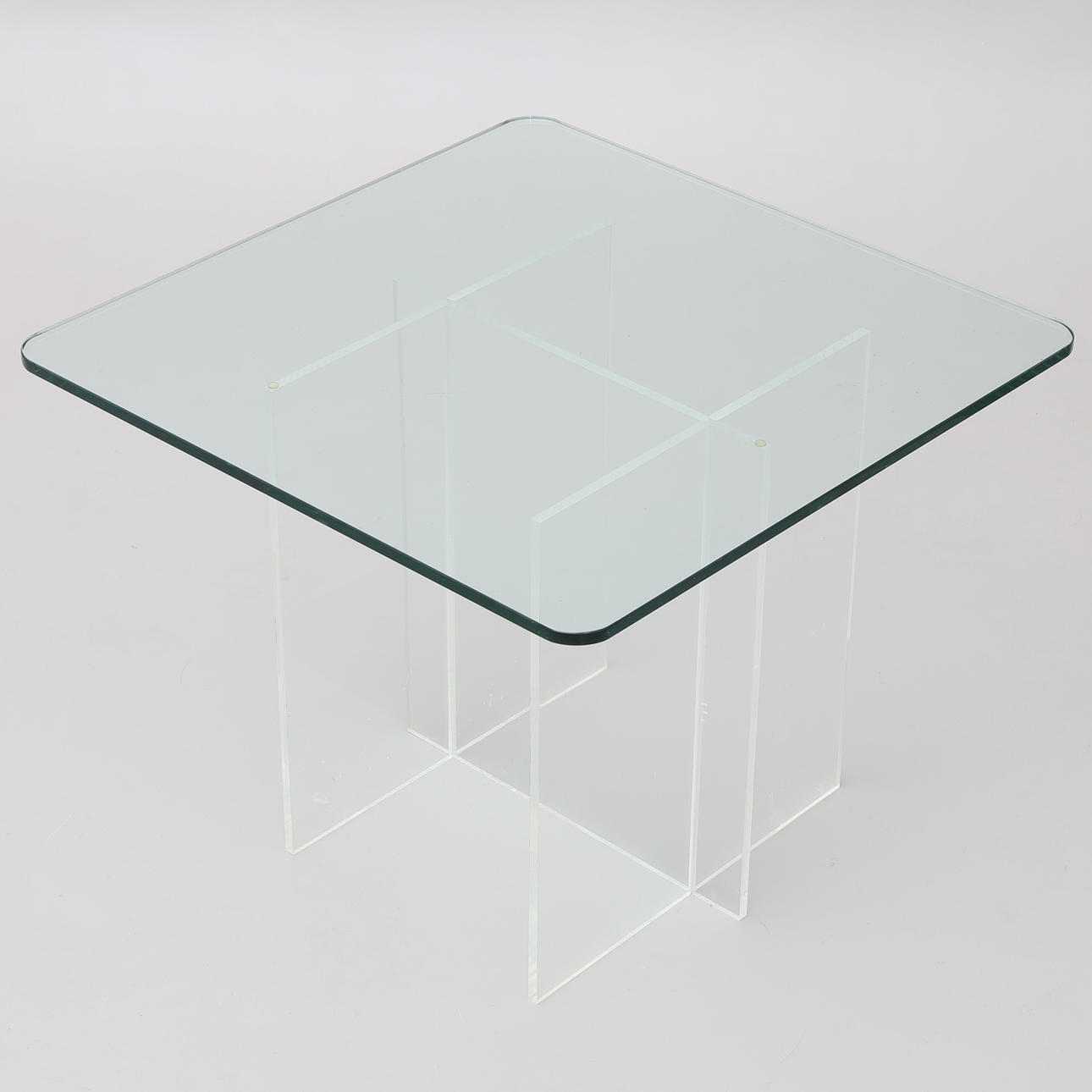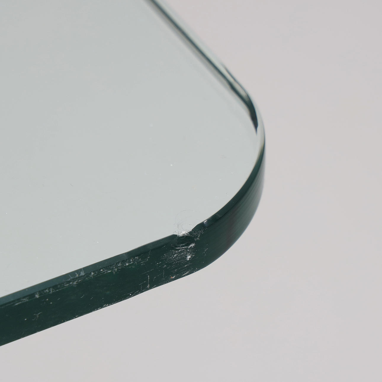 Normal wear and tear, plexiglass with marks, glass top with chips and scratches.