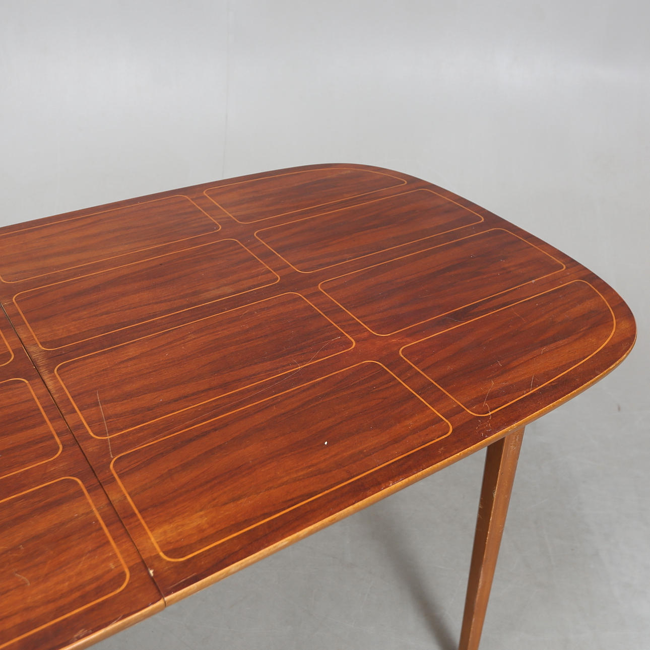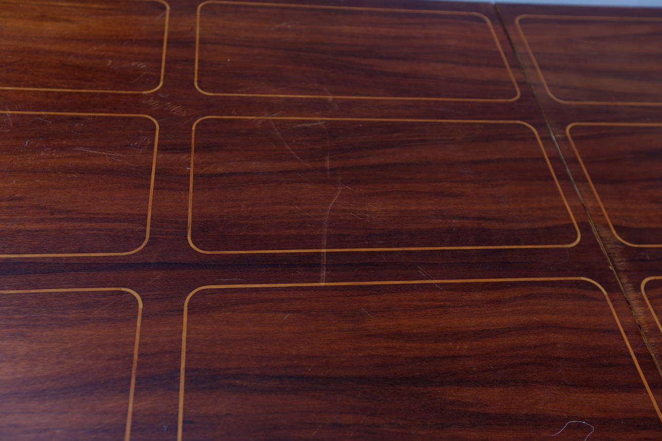Disc with intarsia. Crossed leg. Height approx. 75 cm. Width approx. 80 cm Length approx. 160 cm.
