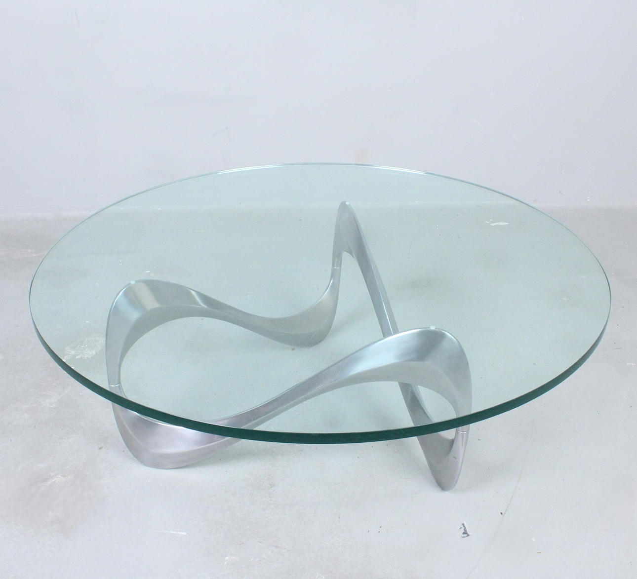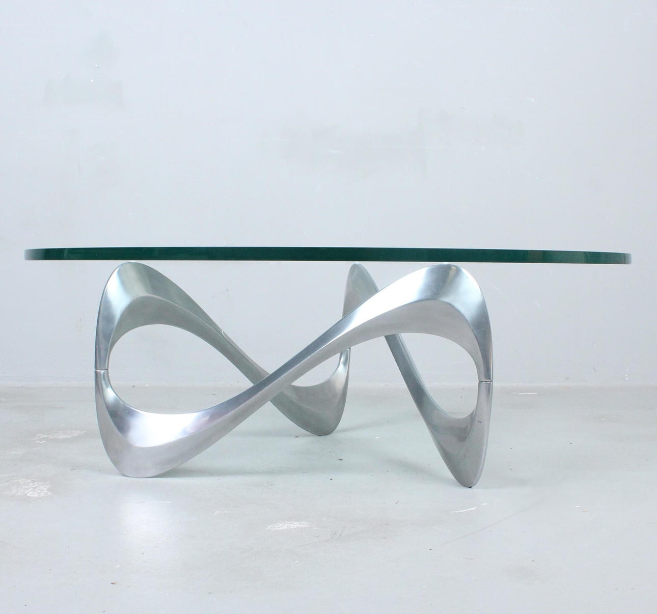 Knut Hesterberg for Ronald Schmitt, round coffee table/coffee table 'Snake', 1970s, resting round glass plate,