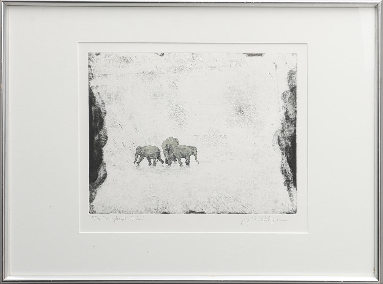 JAN DAHLGREN 1954-. ETCHING, “ELEPHANT TALK”, SIGNED AND NUMBERED 64/97.