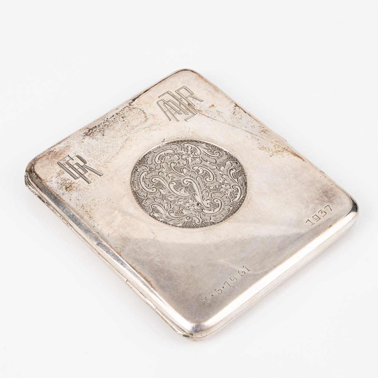 Decor in art deco or floral medallion, 9x8 and 8,5x8 cm. Total weight approx. 154 grams.