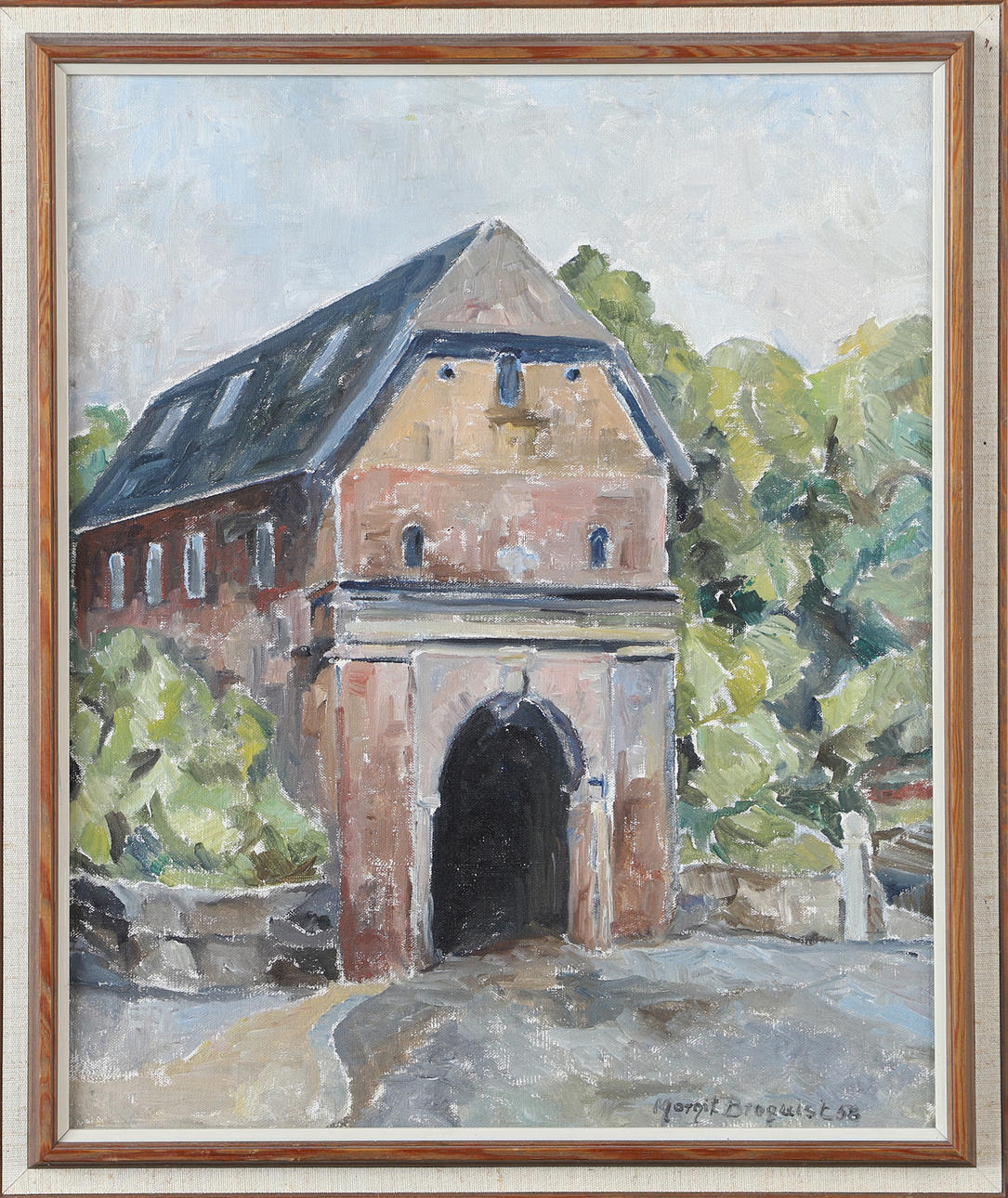 3825237. MARGIT BROQUIST. Landscape with house, oil on panel, signed.