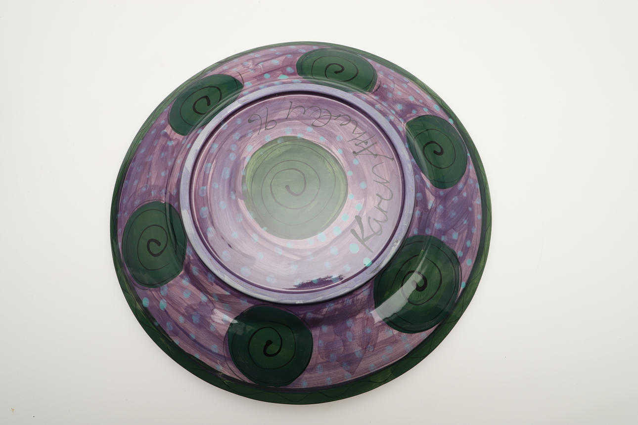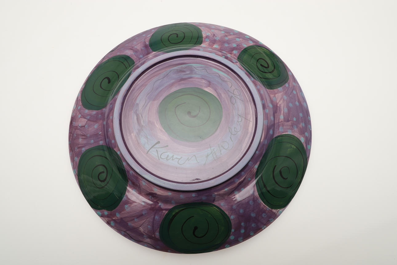 3829252. KAREN ATHERLEY - FOUR POTTERY DISHES.