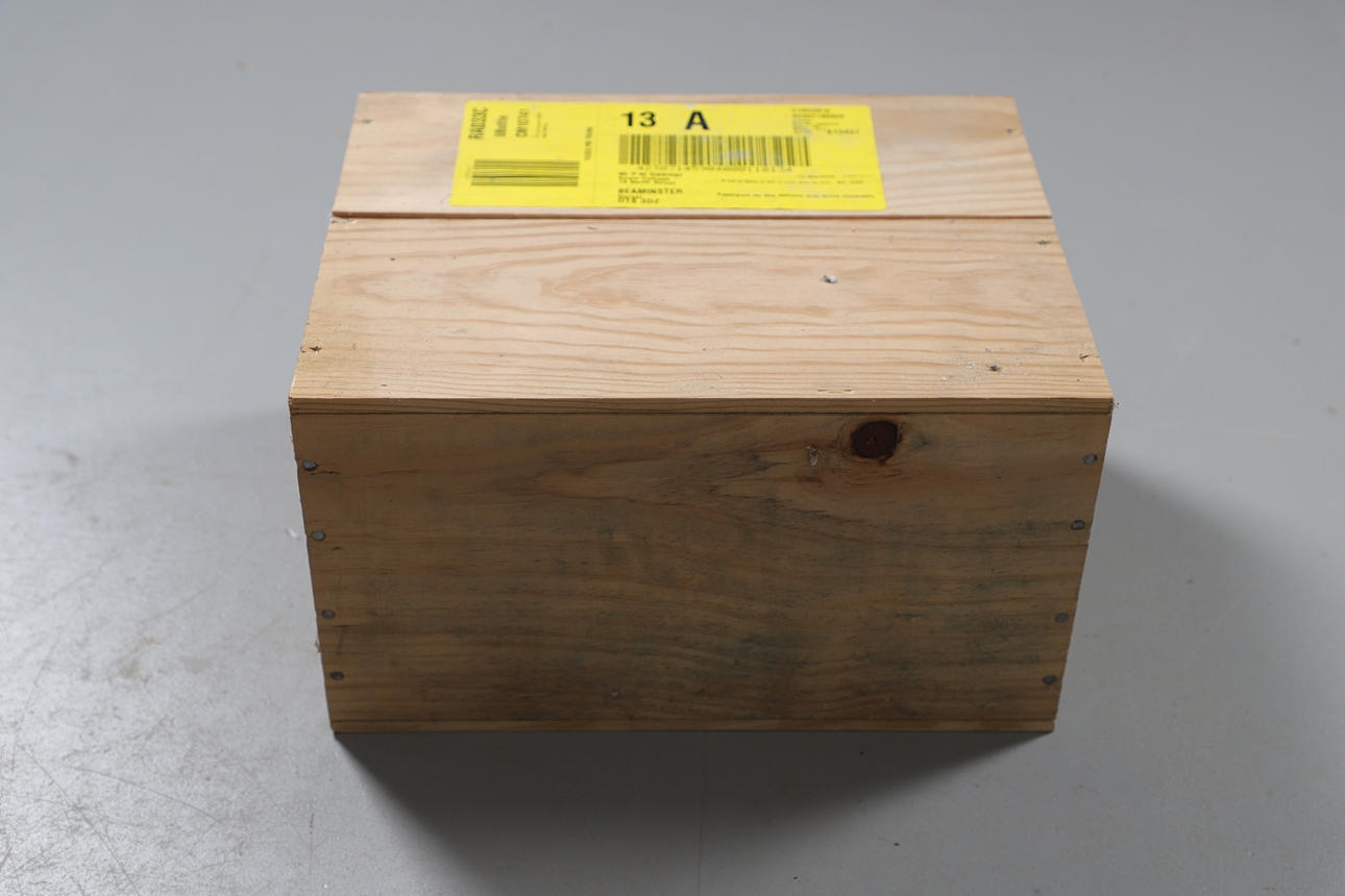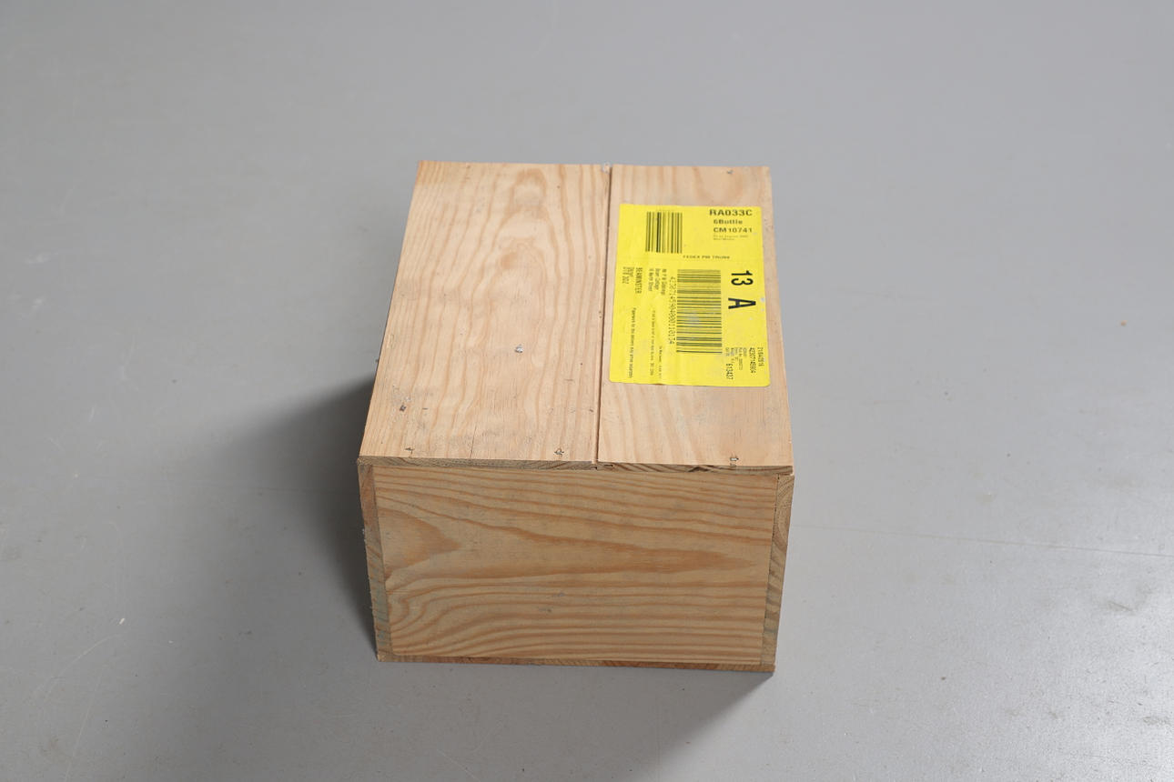 An unopened case of Chateau La Lagune Haut-Medoc 2005, Grand Cru Classe. Purchased from the Wine Society. Case 33cms by 26cms