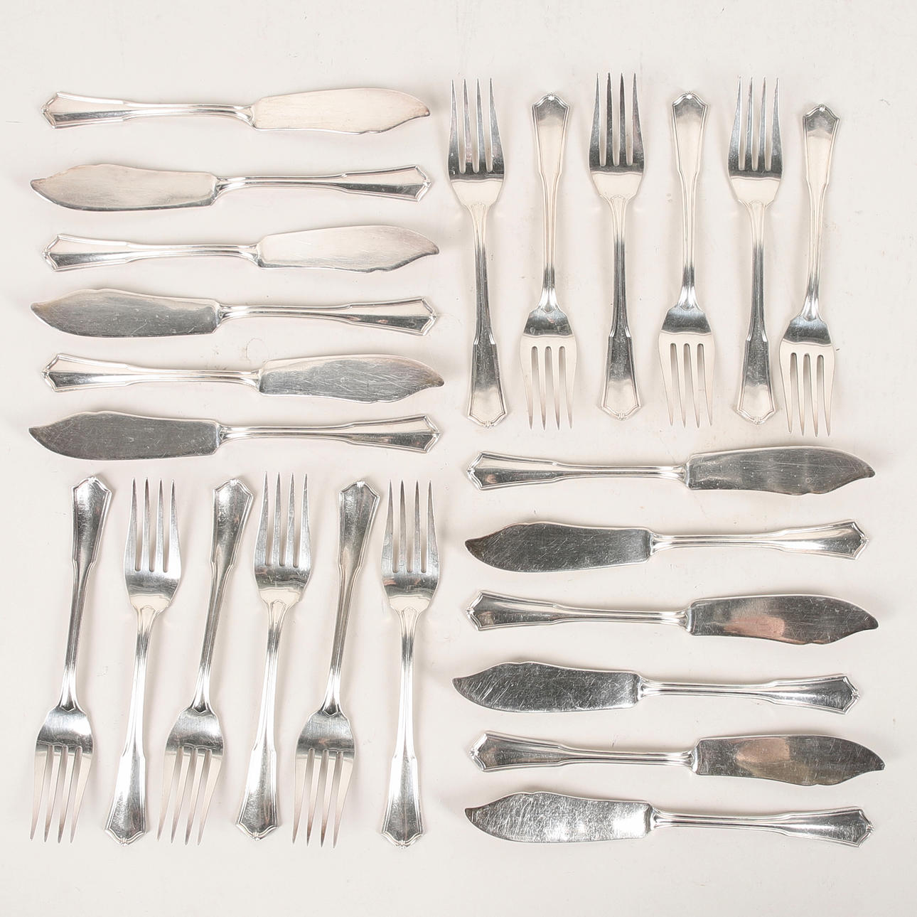 3829751. FISH CUTLERY, silver plated, Oneida community reliance plate.