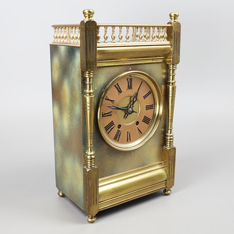 In green marble, dial with Roman numerals, flanked by Roman athletes in bronze, measures approx. 15,35x10cm.