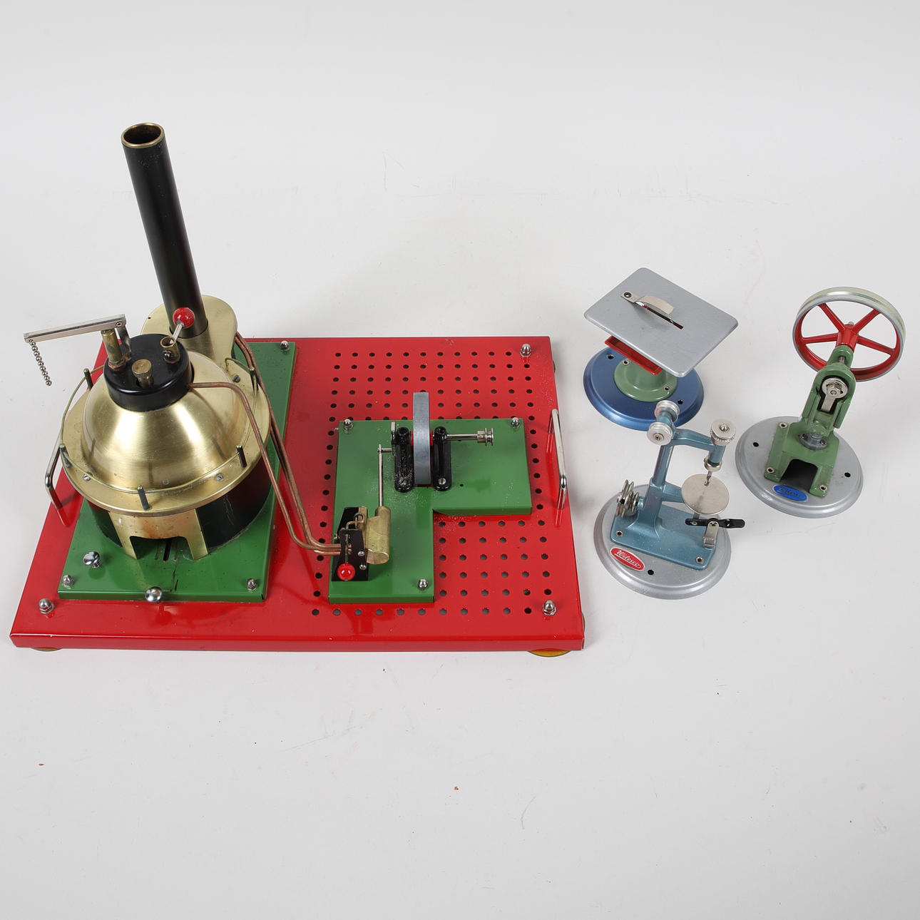A steam engine, “John Ericsson Steam Engine”, with accessories from Wilesco, AB Alga, later half of the 20th century.