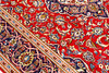 Main field with red base color, center medallion and corner ornaments. The main field is also adorned with palmette and arabesque cranes in polychrome colors.