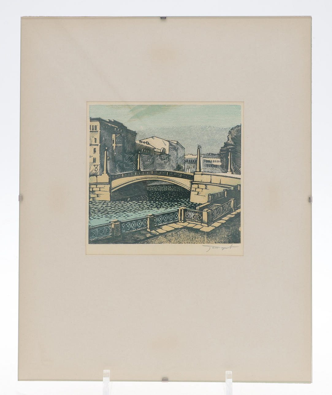 3839852. OIDENTIFIERAD KONSTNÄR. Etching, Krasnogvardeysky bridge over Griboyedov canal, signed.