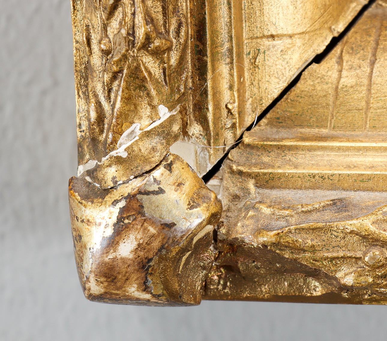 Minor surface dirt. Somewhat less crackle. Minor bump mark from tensioning frame.