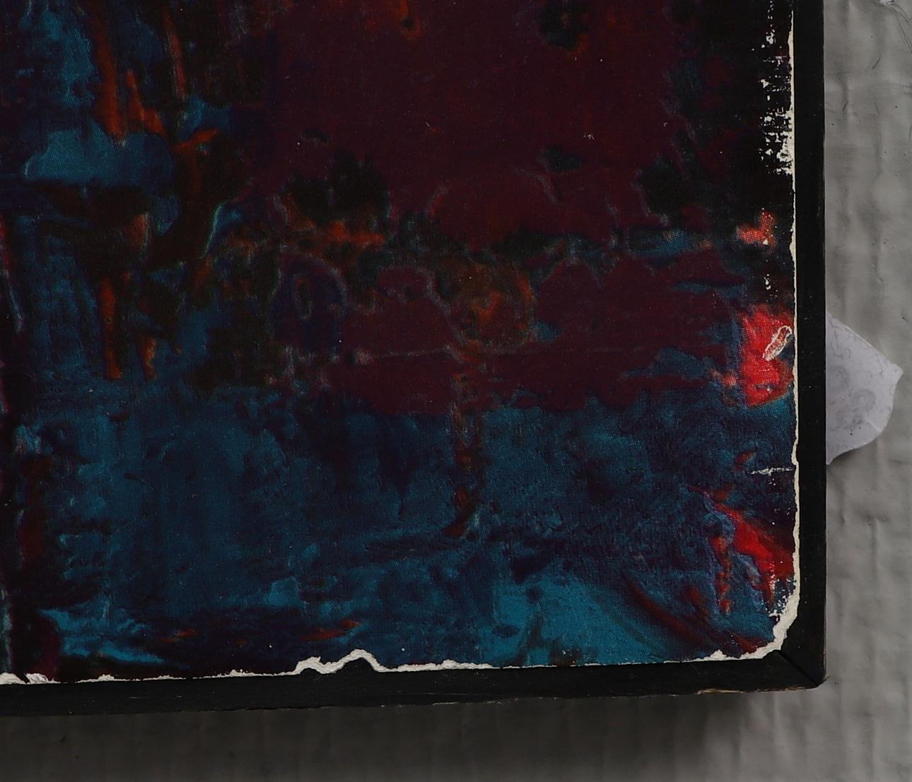 Normal wear and tear, surface dirt. Torn edges of the motif.