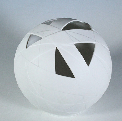 Alexandra Tsoukala, sculptural floor lamp, model 'Concha', satin-polyester lampshade Dimensions approx.: H. 220 cm, W 95 cm, depth 40 cm.