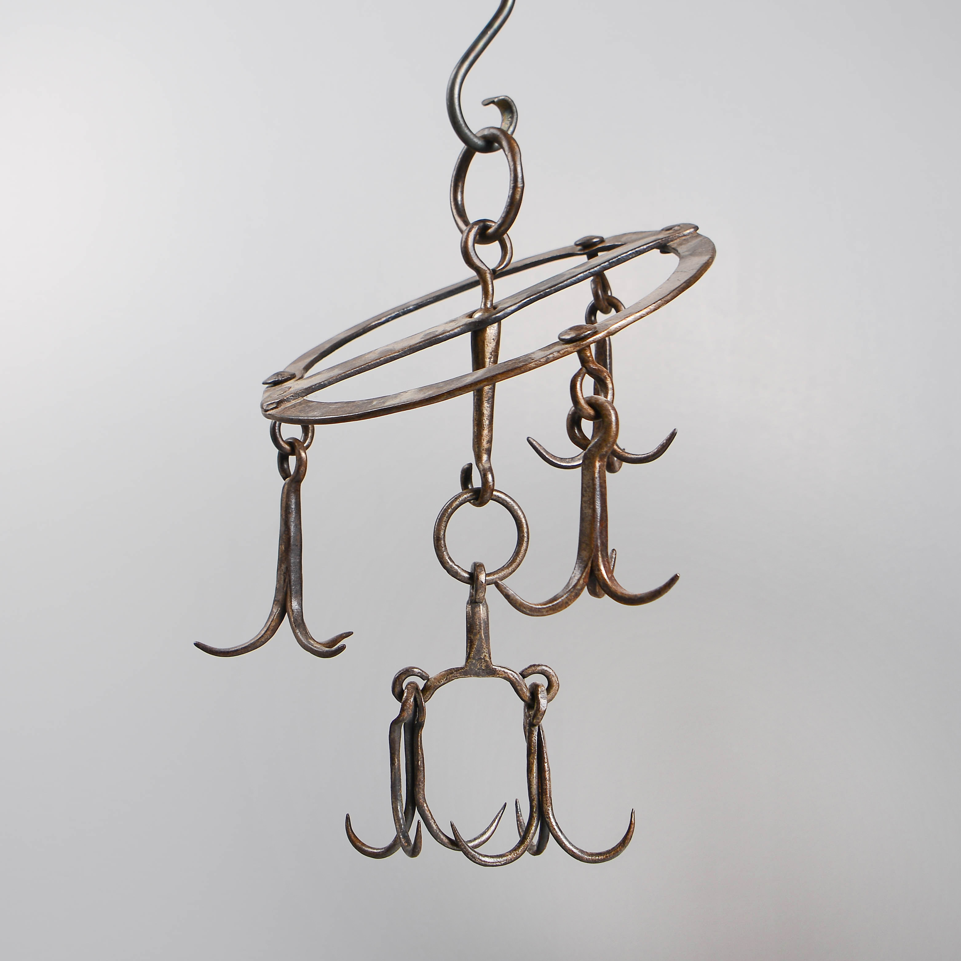 3856477. Wrought iron meat hooks, 19th century.