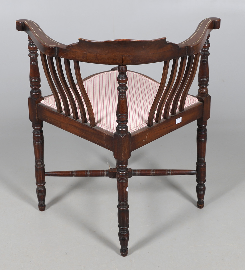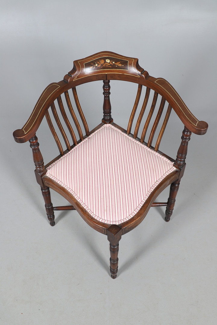 3858074. AN EDWARDIAN CORNER CHAIR.
