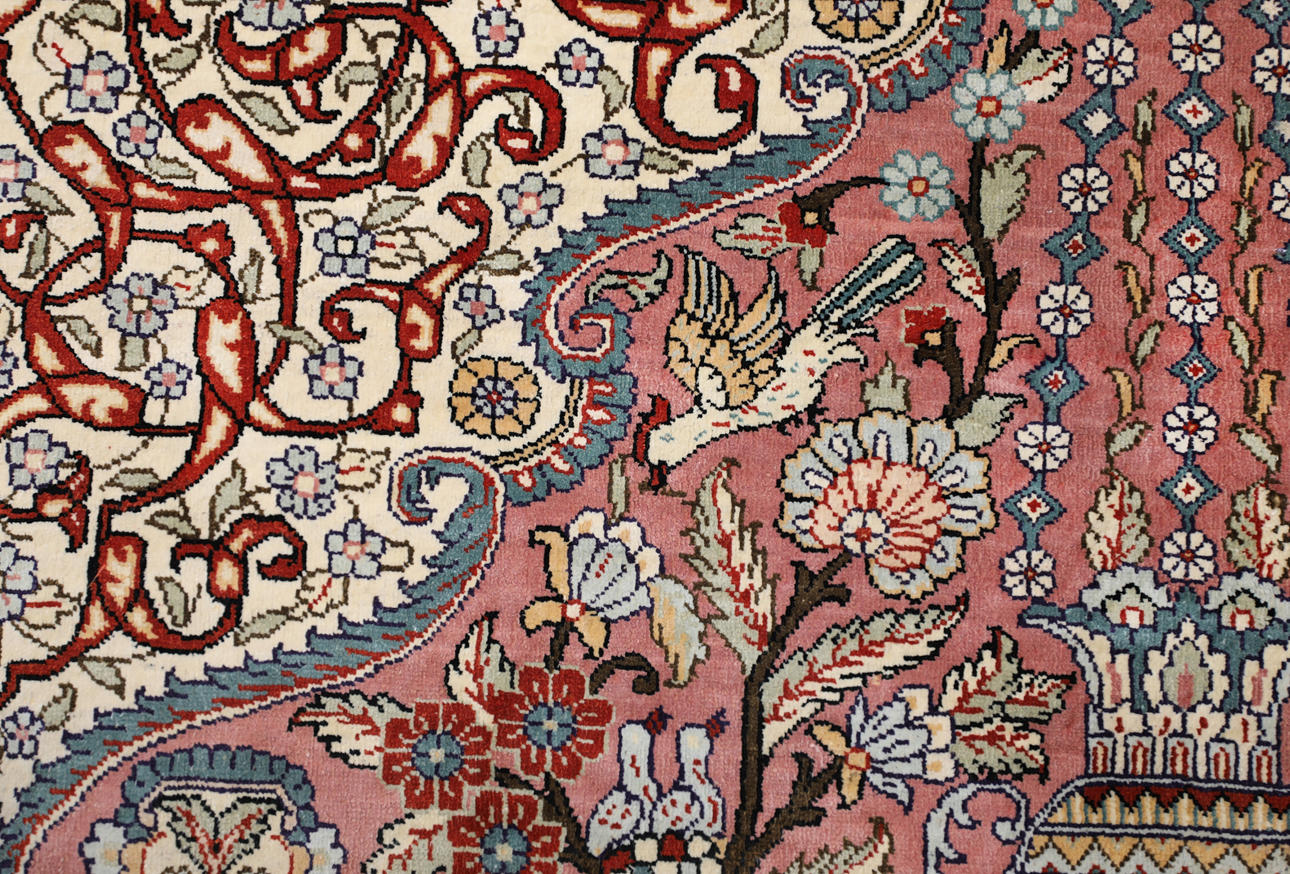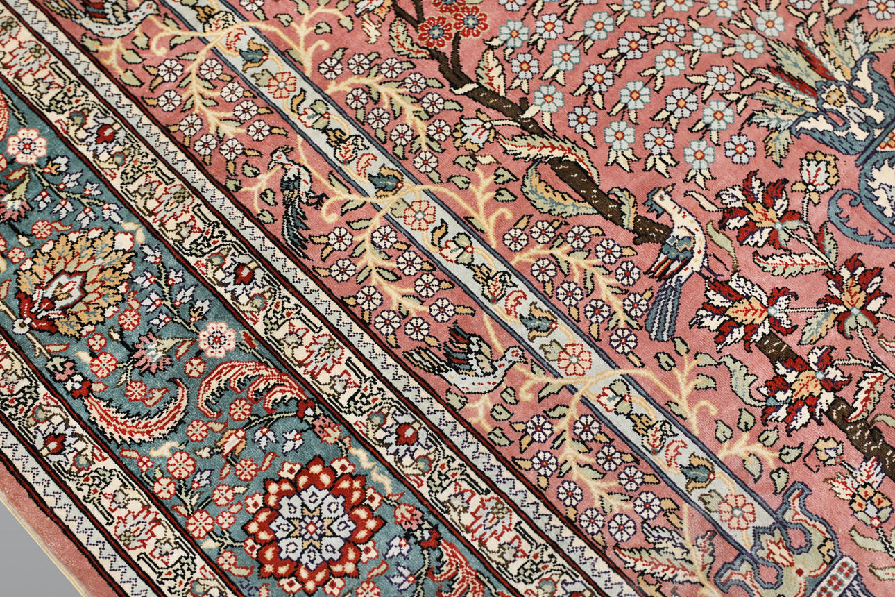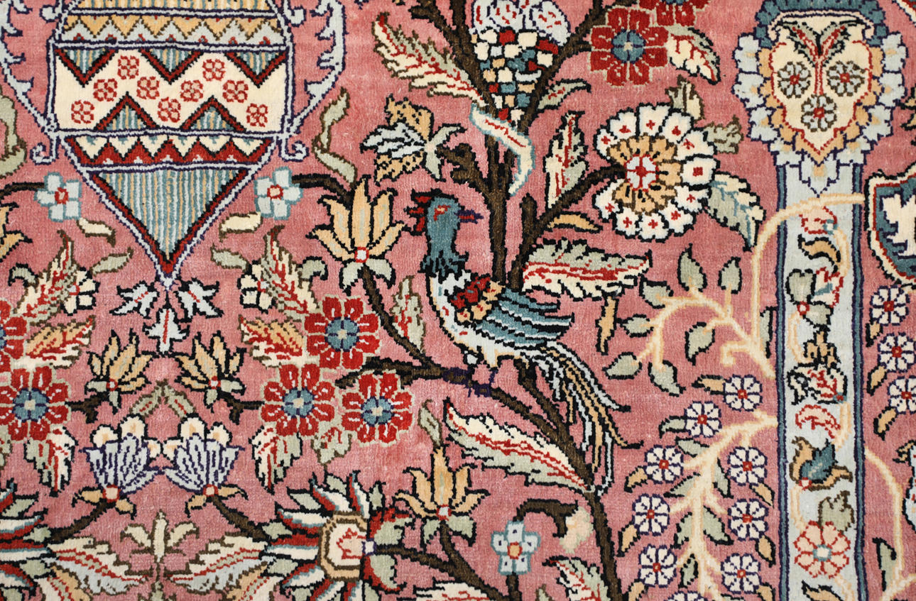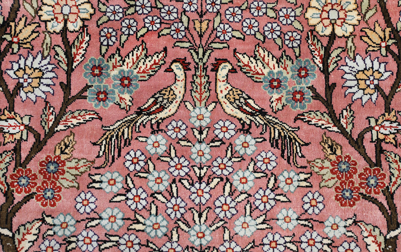 3859368. A RUG, Figural Oriental silk, silk yarn.