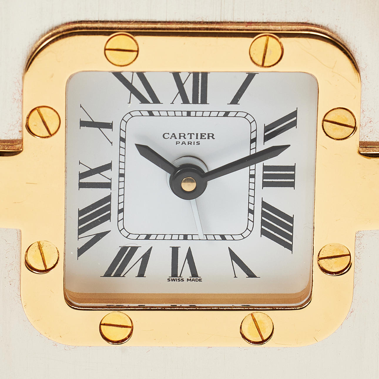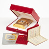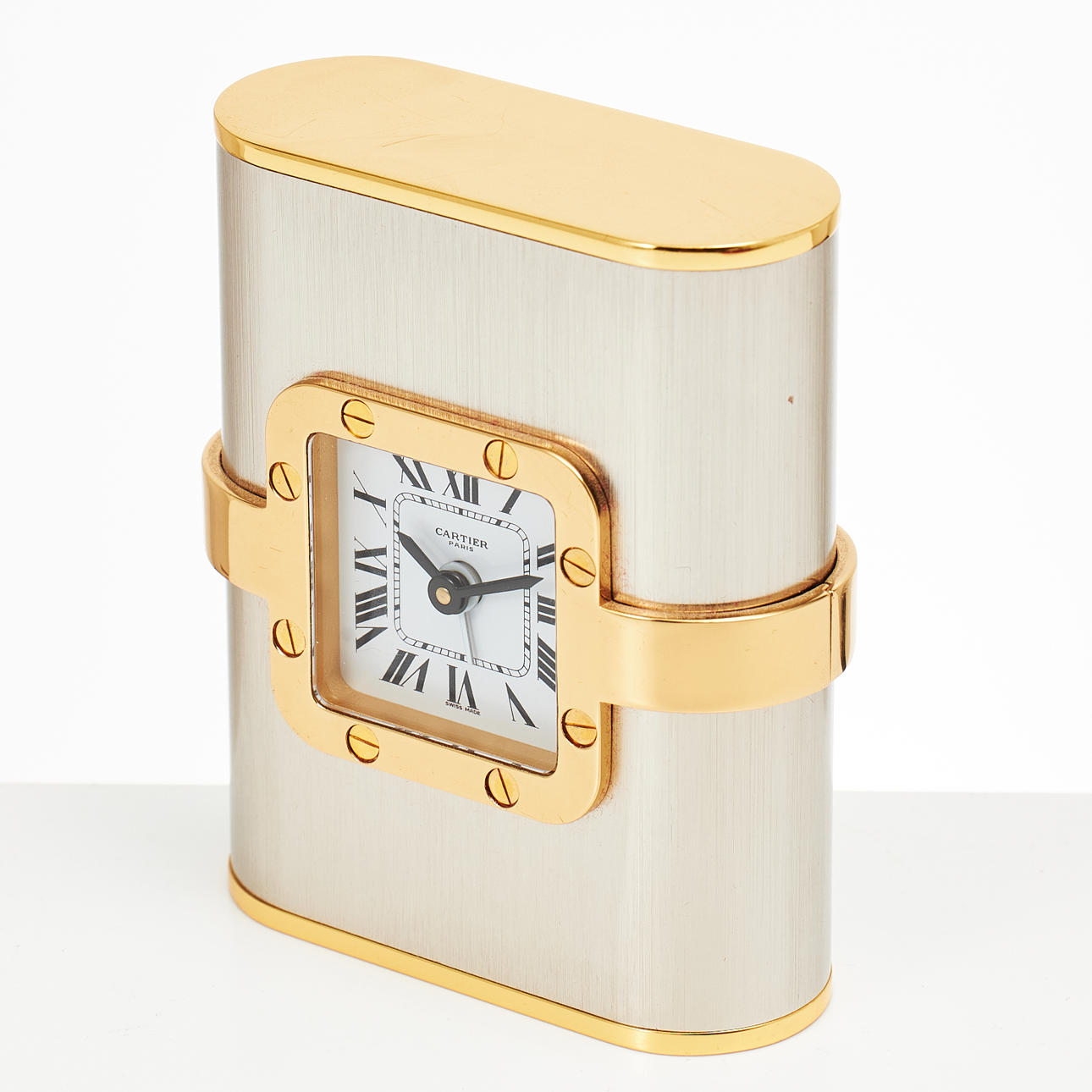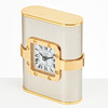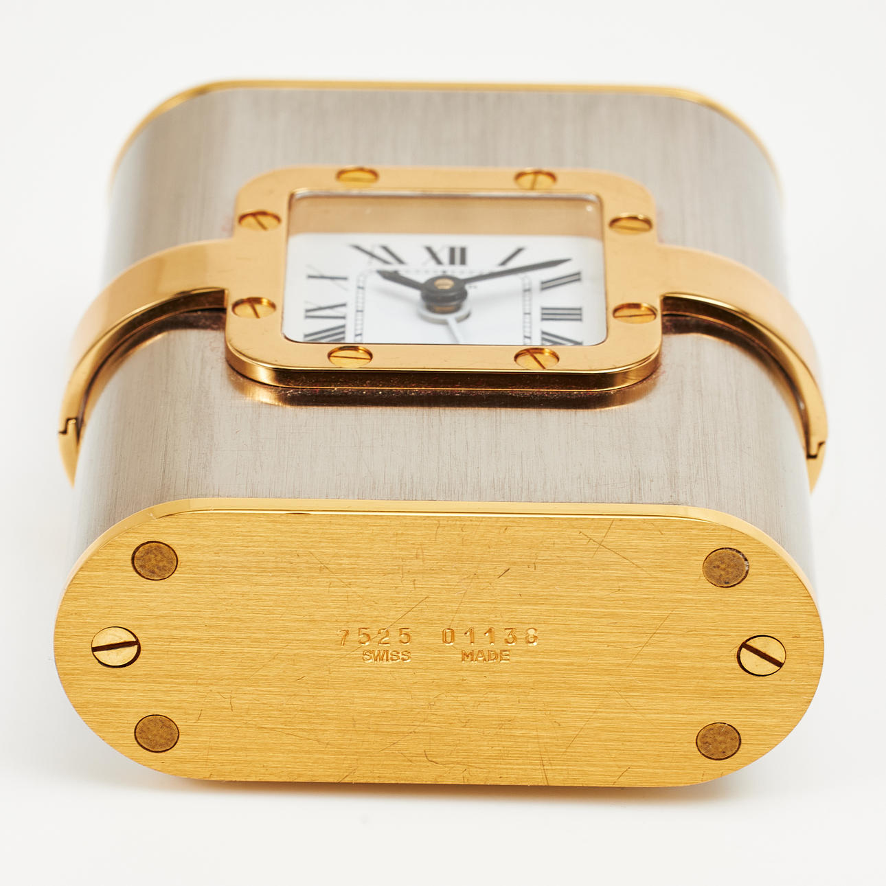 Quartz, dial with roman numerals, alarm, case no. 7525, serial no. 01138, height approx. 9 cm, box, paper.