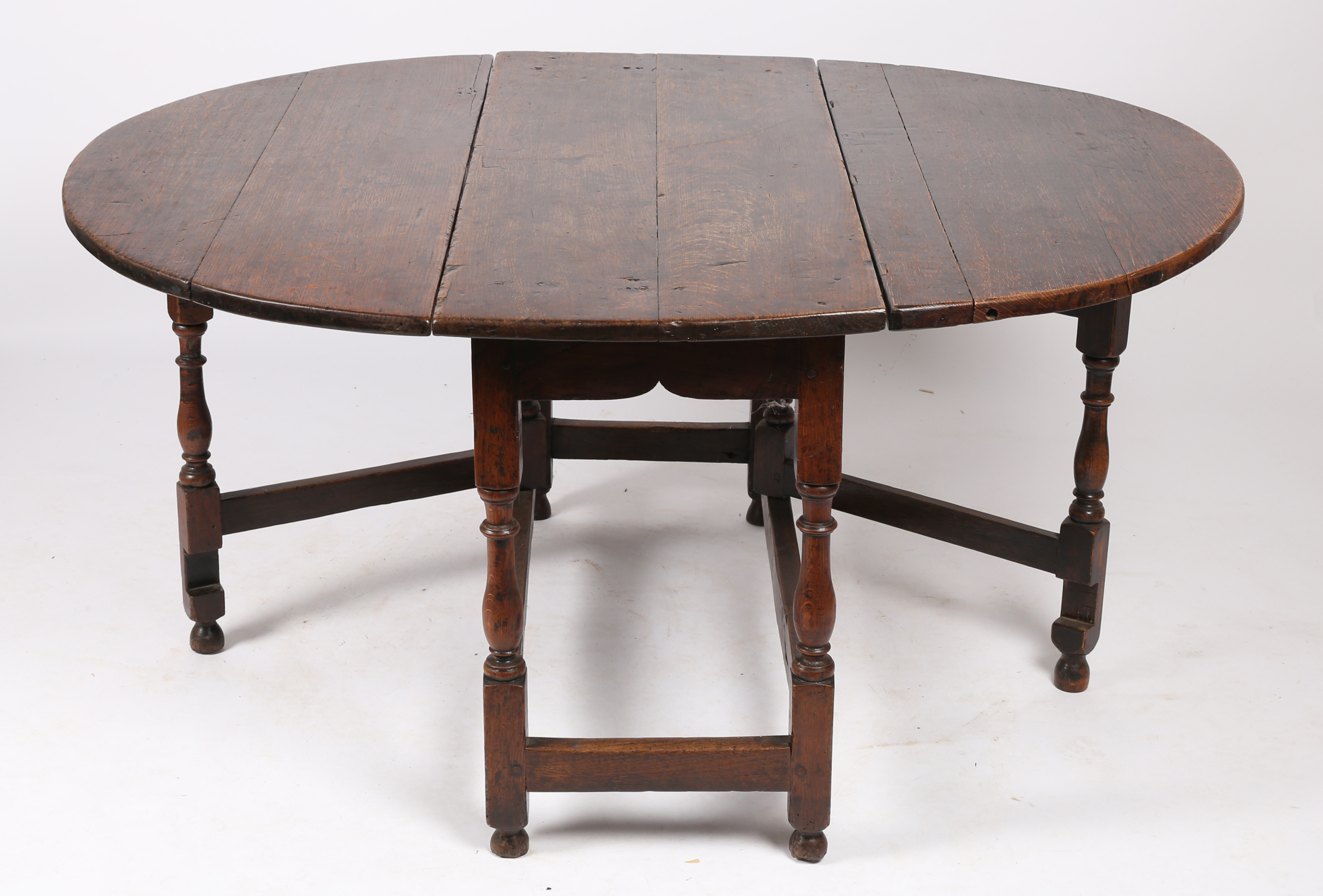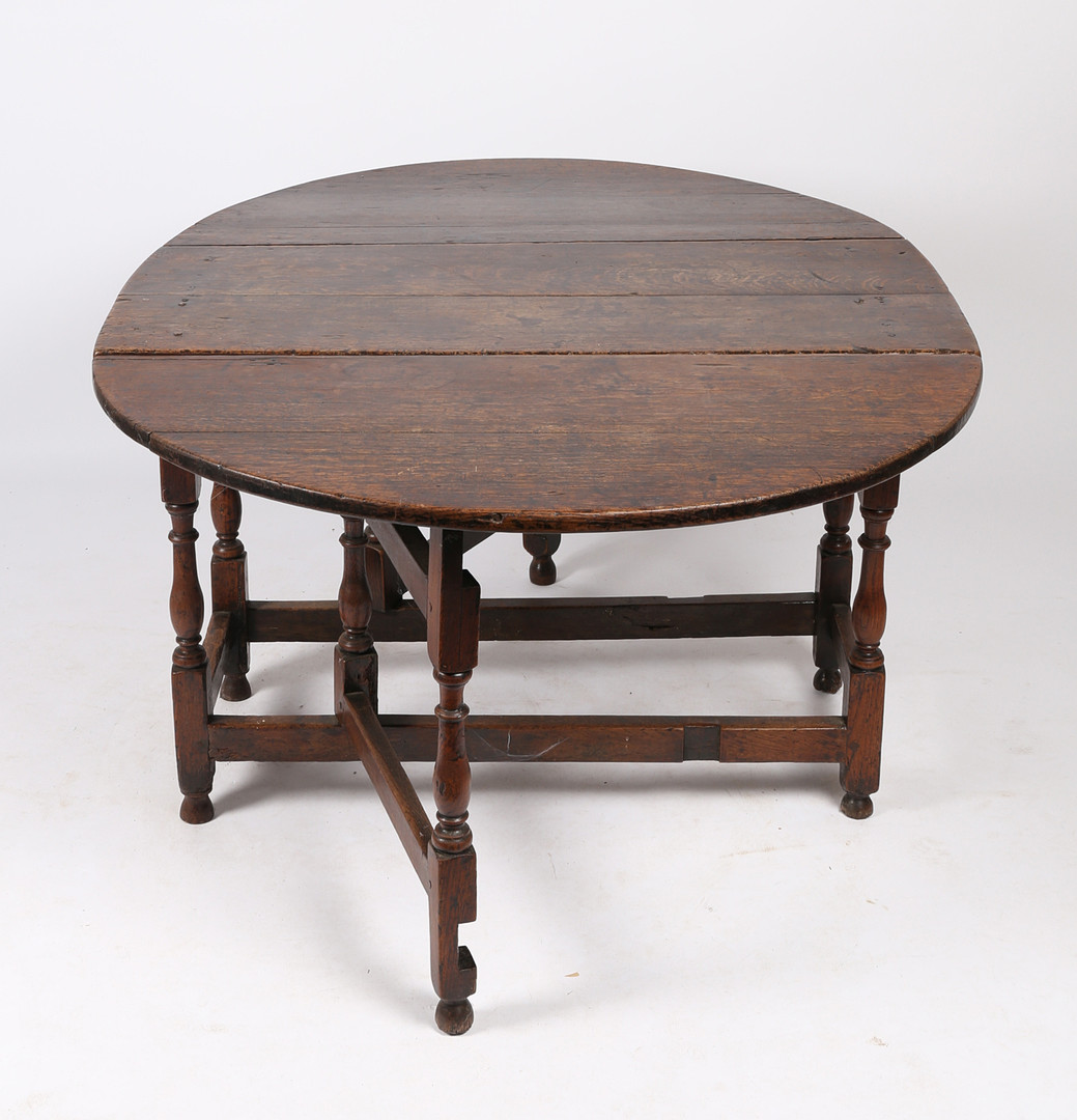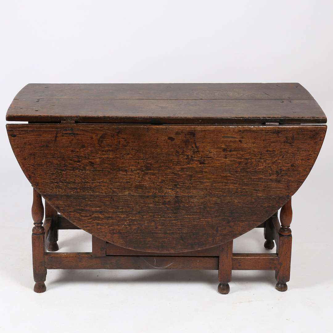 3860855. AN 18TH CENTURY OAK GATE LEG DROP LEAF TABLE.