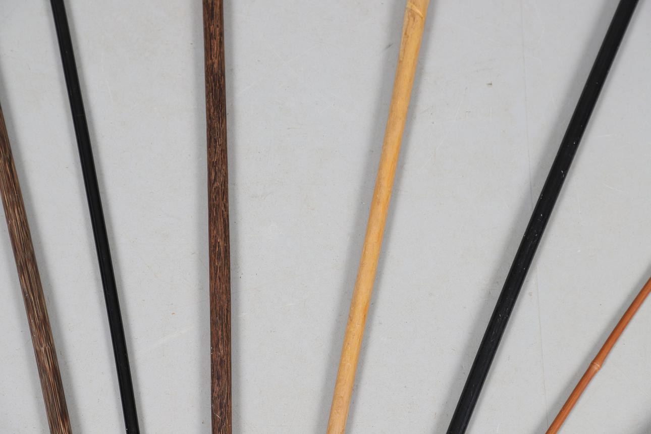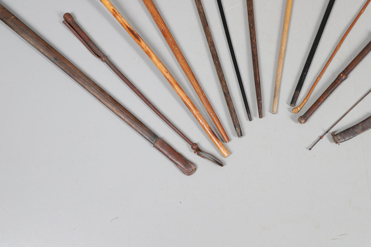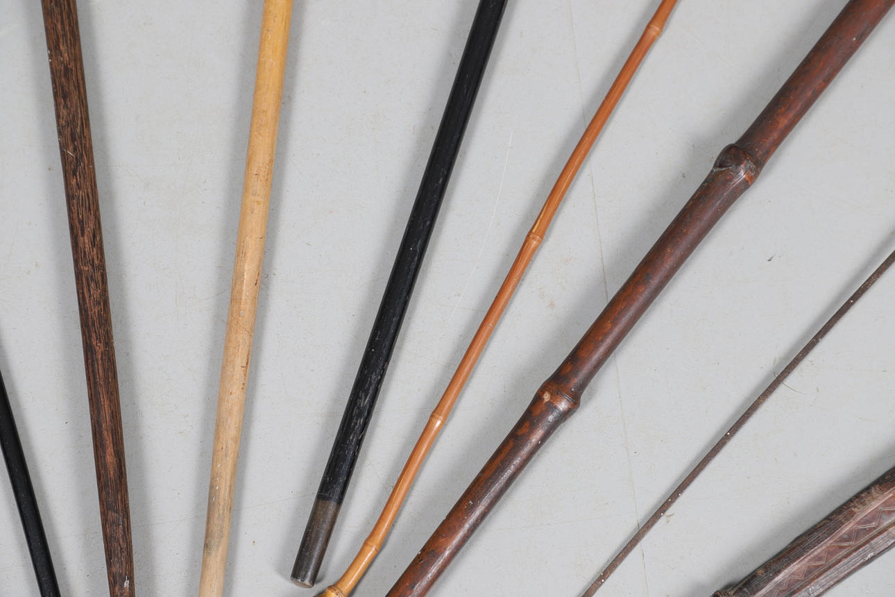 3861080. SILVER TOP WALKING CANE & VARIOUS WALKING STICKS & SWORD.