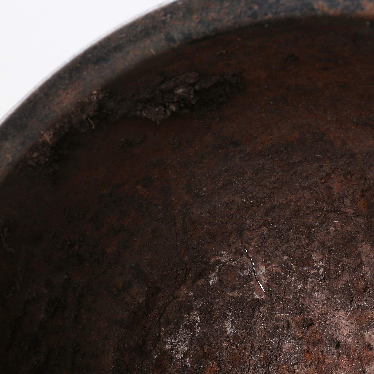 Holes in the side on smaller Crack in the bottom on large Rust peeling, stains.